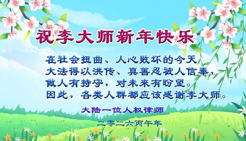 (Minghui.org) Zum chinesischen Neujahrsfest senden Falun-Dafa-Praktizierende auf der ganzen Welt traditionell Grußkarten, Gedichte und Fotos an die Minghui-Website. Damit wünschen sie ihrem barmherzigen, verehrten Meister Li Hongzhi ein frohes neues Jahr.