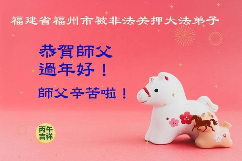 (Minghui.org) Hohe Mauern können die aufrichtigen Gedanken von Kultivierenden nicht einsperren, Gefängnisse können das rechtschaffene Handeln der Dafa-Jünger nicht aufhalten. Dafa-Jünger tragen das Fa im Herzen. Kein noch so schlechtes Umfeld vermag ihren aufrichtigen Glauben und ihre aufrichtigen Gedanken zu erschüttern. Anlässlich des Neujahrs im Jahr des Feuerpferdes denken die Dafa-Jünger, die von der KP Chinas illegal inhaftiert sind, mit großer Sehnsucht an den barmherzigen Meister und übermitteln ihre Neujahrsgrüße.