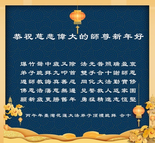 (Minghui.org) Zum chinesischen Neujahrsfest senden Falun-Dafa-Praktizierende auf der ganzen Welt traditionell Grußkarten, Gedichte und Fotos an die Minghui-Website. Damit wünschen sie ihrem barmherzigen, verehrten Meister Li Hongzhi ein frohes neues Jahr.