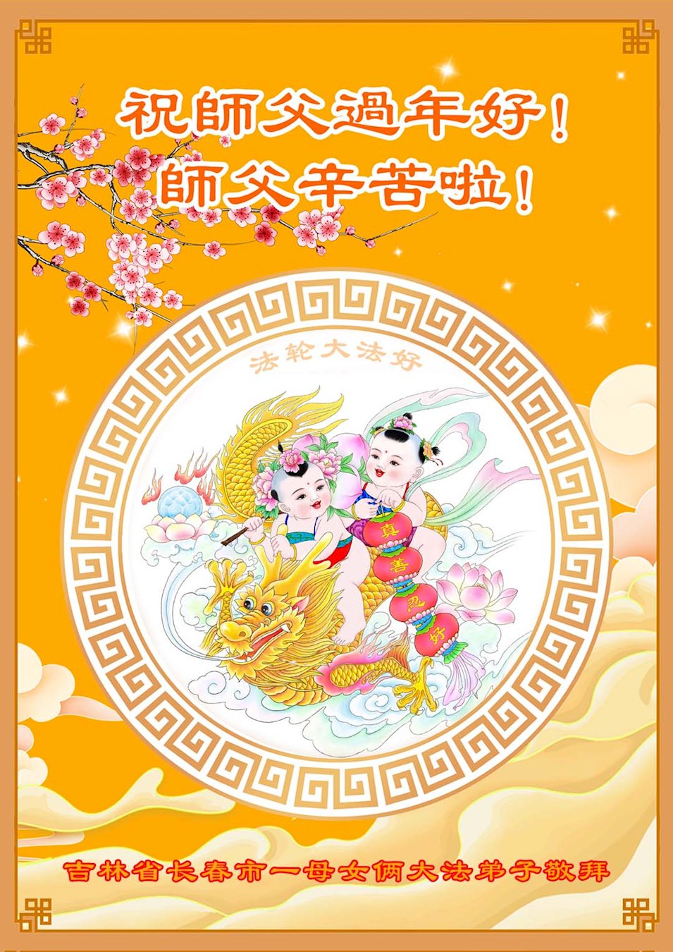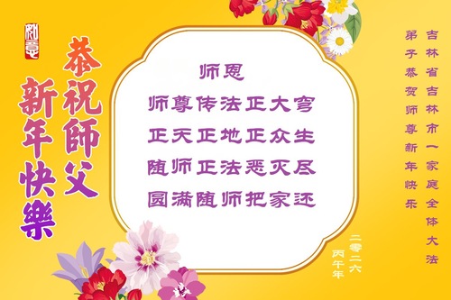 (Minghui.org) Zum chinesischen Neujahrsfest senden Falun-Dafa-Praktizierende auf der ganzen Welt traditionell Grußkarten, Gedichte und Fotos an die Minghui-Website. Damit wünschen sie ihrem barmherzigen, verehrten Meister Li Hongzhi ein frohes neues Jahr.