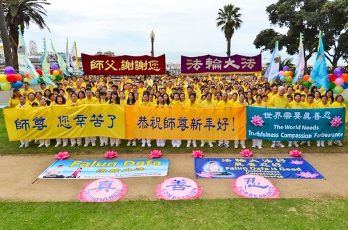 (Minghui.org) Falun-Dafa-Praktizierende in Los Angeles versammelten sich am Sonntag, 15. Februar, am Santa Monica Strand und überbrachten dem Begründer von Falun Dafa, Meister Li Hongzhi, ihre Neujahrsgrüße. Viele berichteten anschließend von ihren persönlichen Erfahrungen mit Falun Dafa und wie sie davon profitiert haben.