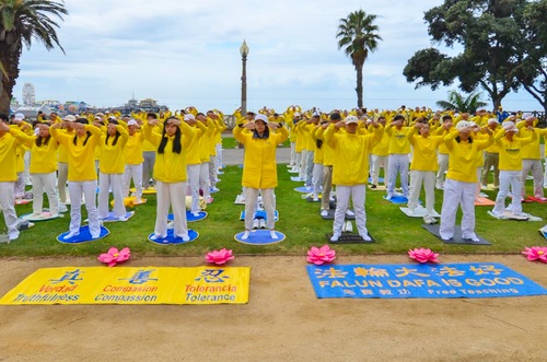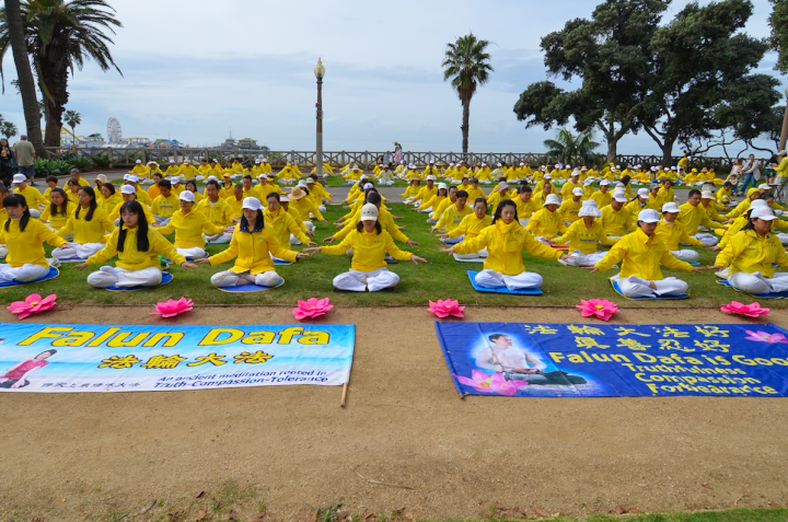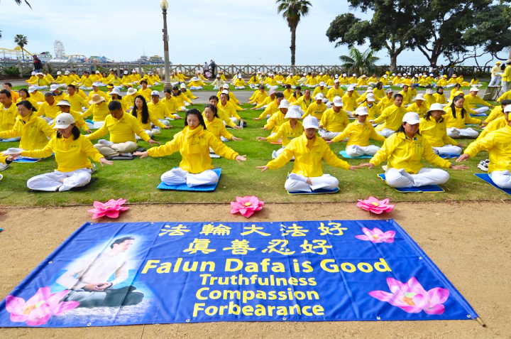 Die Praktizierenden versammeln sich am Strand von Santa Monica und wünschen Meister Li Hongzhi ein frohes chinesisches Neujahr