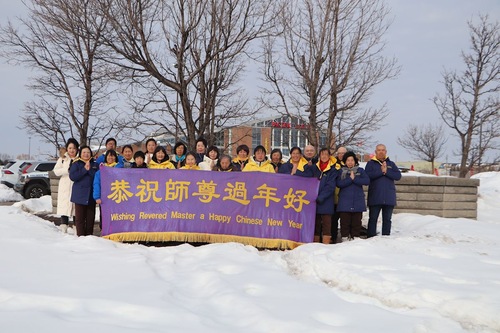 Die Praktizierenden vom Informationsstand in der Pacific Mall wünschen dem Meister ein frohes chinesisches Neujahr