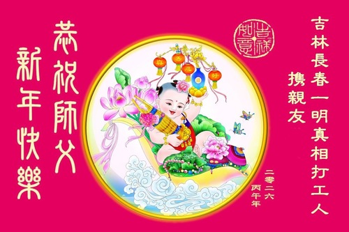 „Unser Sohn ist 14 und glaubt ebenfalls an Falun Dafa. Eines Abends vor einer wichtigen Prüfung bekam er plötzlich über 40 Grad Fieber. Er rezitierte die ,Falun-Dafa-Sätze‘ und war am nächsten Morgen wieder gesund“, schrieben seine Eltern. „Wir haben ähnliche Geschichten von anderen gehört. Vielen Dank, Meister Li, für alles! Wir wünschen Ihnen von Herzen ein frohes chinesisches neues Jahr!“