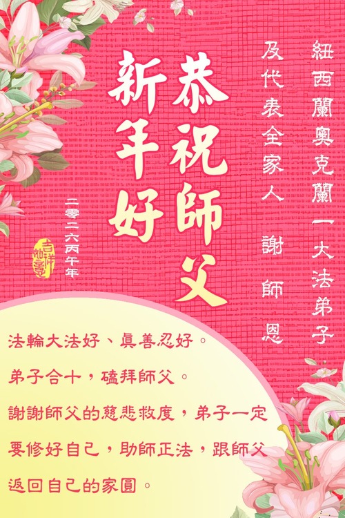 (Minghui.org) Zum chinesischen Neujahrsfest senden Falun-Dafa-Praktizierende auf der ganzen Welt traditionell Grußkarten, Gedichte und Fotos an die Minghui-Website. Damit wünschen sie ihrem barmherzigen, verehrten Meister Li Hongzhi ein frohes neues Jahr.