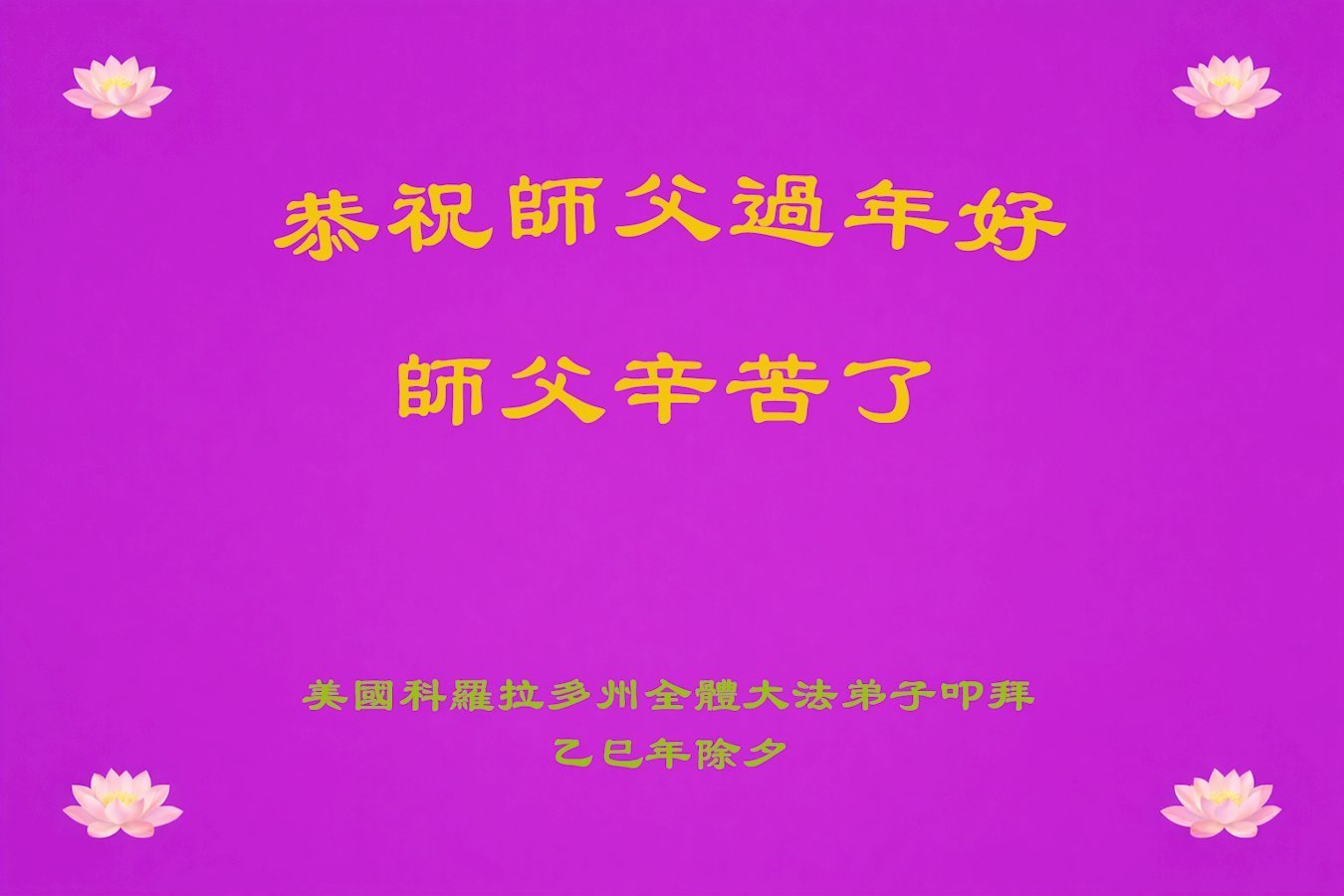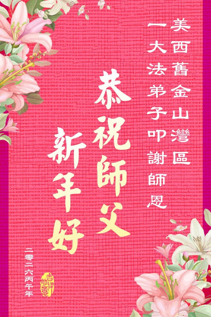 (Minghui.org) Zum chinesischen Neujahrsfest senden Falun-Dafa-Praktizierende auf der ganzen Welt traditionell Grußkarten, Gedichte und Fotos an die Minghui-Website. Damit wünschen sie ihrem barmherzigen, verehrten Meister Li Hongzhi ein frohes neues Jahr.