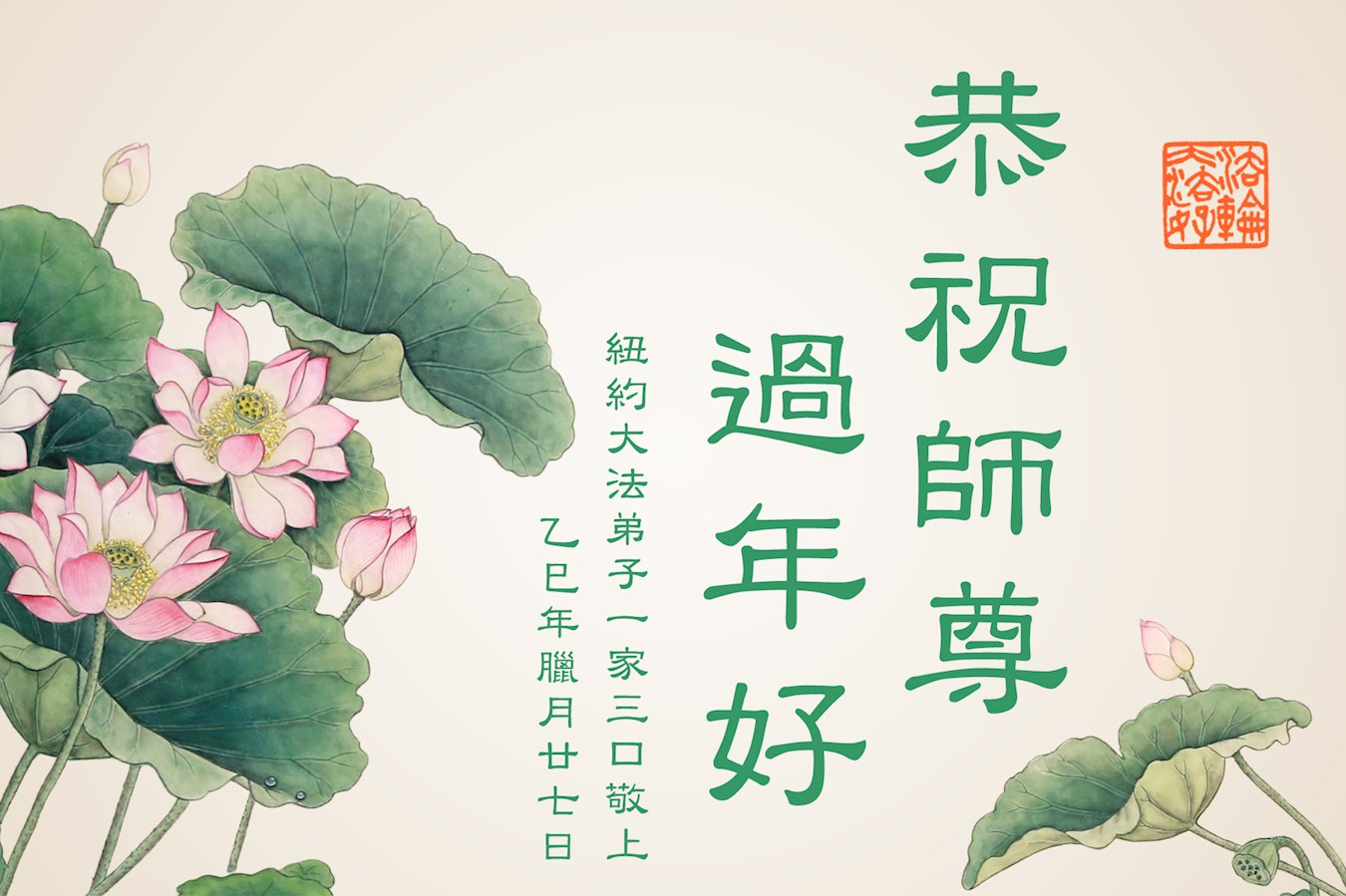 (Minghui.org) Zum chinesischen Neujahrsfest senden Falun-Dafa-Praktizierende auf der ganzen Welt traditionell Grußkarten, Gedichte und Fotos an die Minghui-Website. Damit wünschen sie ihrem barmherzigen, verehrten Meister Li Hongzhi ein frohes neues Jahr.