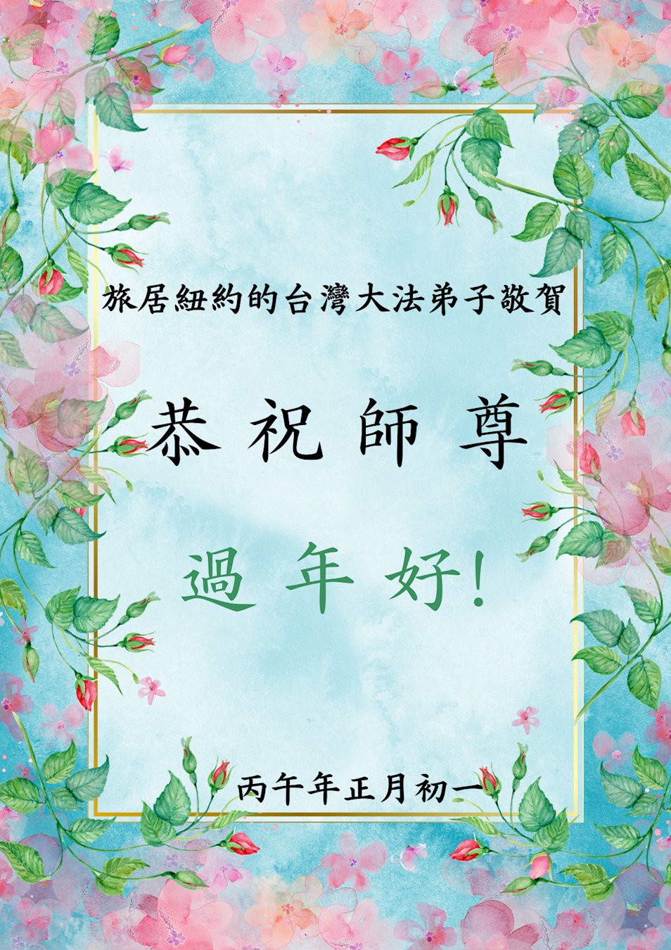 (Minghui.org) Zum chinesischen Neujahrsfest senden Falun-Dafa-Praktizierende auf der ganzen Welt traditionell Grußkarten, Gedichte und Fotos an die Minghui-Website. Damit wünschen sie ihrem barmherzigen, verehrten Meister Li Hongzhi ein frohes neues Jahr.