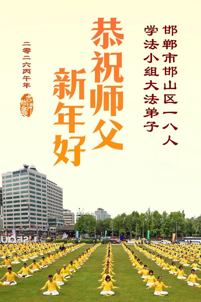 Die Grüße kommen von Praktizierenden aus folgenden Städten: Zhangjiakou, Xingtai, Cangzhou, Handan, Langfang, Qinhuangdao, Baoding, Hengshui, Tangshan und anderen Gebieten.