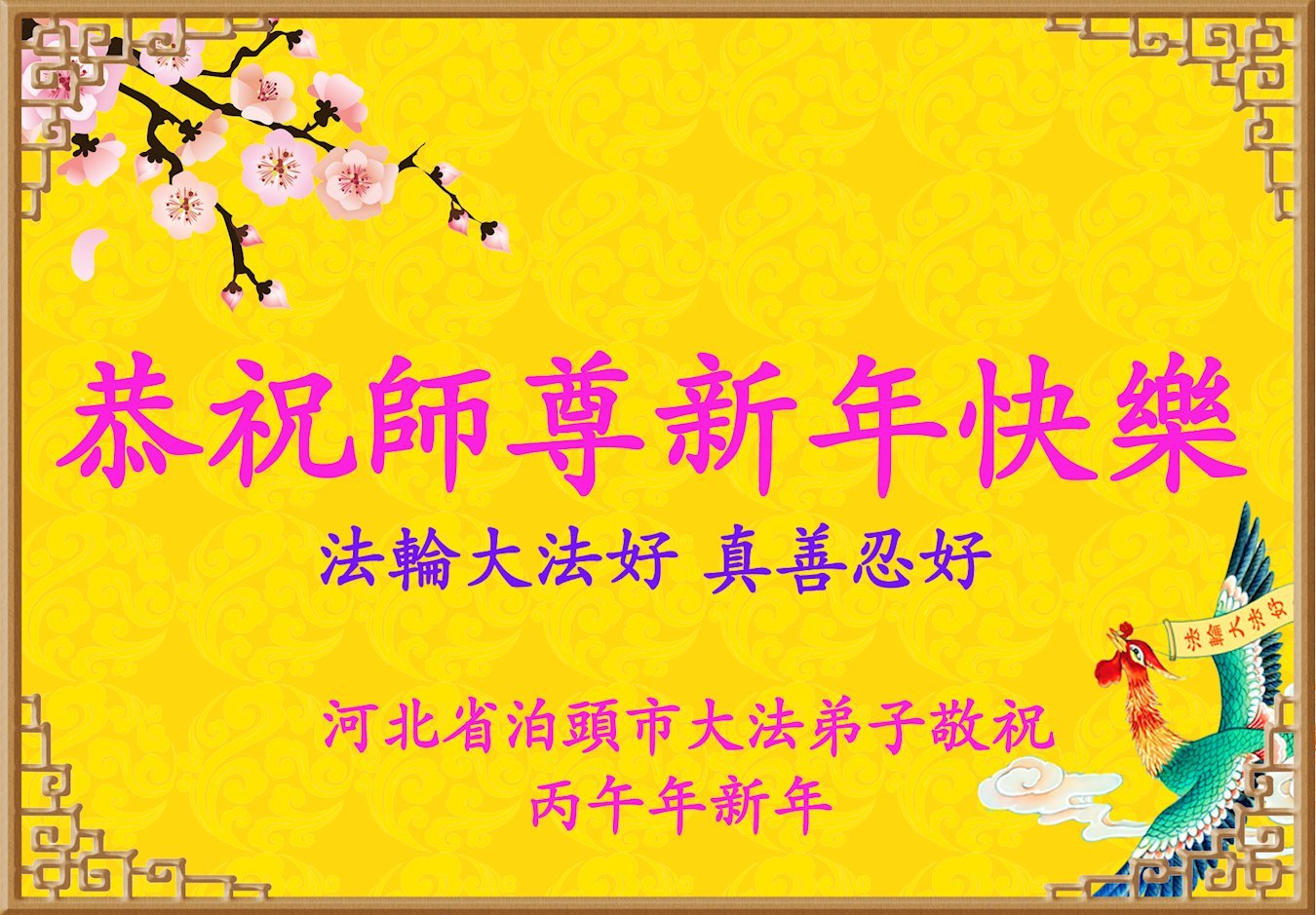 (Minghui.org) Zum chinesischen Neujahrsfest senden Falun-Dafa-Praktizierende auf der ganzen Welt traditionell Grußkarten, Gedichte und Fotos an die Minghui-Website. Damit wünschen sie ihrem barmherzigen, verehrten Meister Li Hongzhi ein frohes neues Jahr.