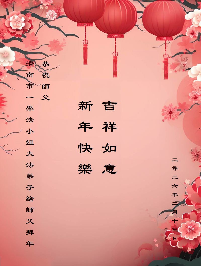 (Minghui.org) Zum chinesischen Neujahrsfest senden Falun-Dafa-Praktizierende auf der ganzen Welt traditionell Grußkarten, Gedichte und Fotos an die Minghui-Website. Damit wünschen sie ihrem barmherzigen, verehrten Meister Li Hongzhi ein frohes neues Jahr.