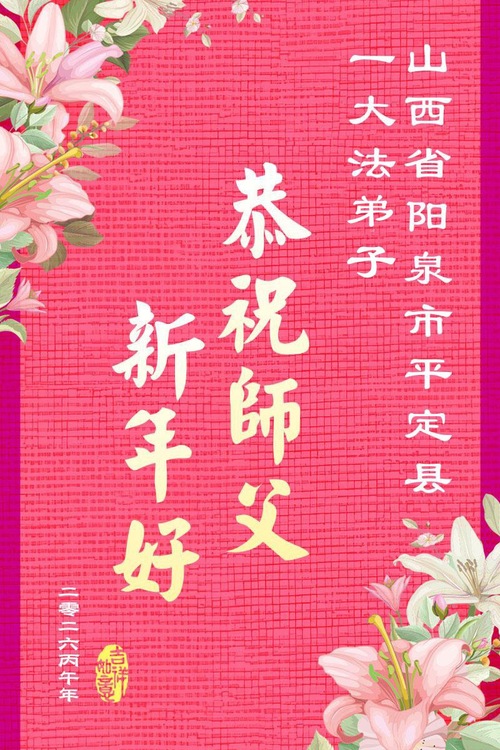 (Minghui.org) Zum chinesischen Neujahrsfest senden Falun-Dafa-Praktizierende auf der ganzen Welt traditionell Grußkarten, Gedichte und Fotos an die Minghui-Website. Damit wünschen sie ihrem barmherzigen, verehrten Meister Li Hongzhi ein frohes neues Jahr.