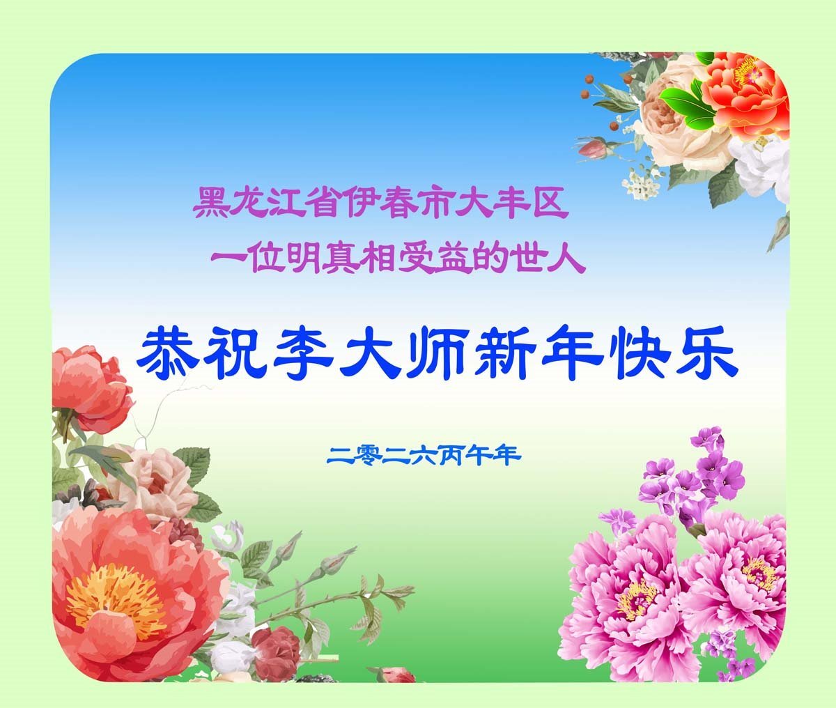 (Minghui.org) Zu Beginn des Jahres des Feuerpferdes 2026 brachten Menschen aus verschiedenen Provinzen und Städten in Festlandchina, die die wahren Umstände erkannt haben, ihre Verehrung für Falun Dafa sowie ihre Dankbarkeit gegenüber Meister Li Hongzhi zum Ausdruck.