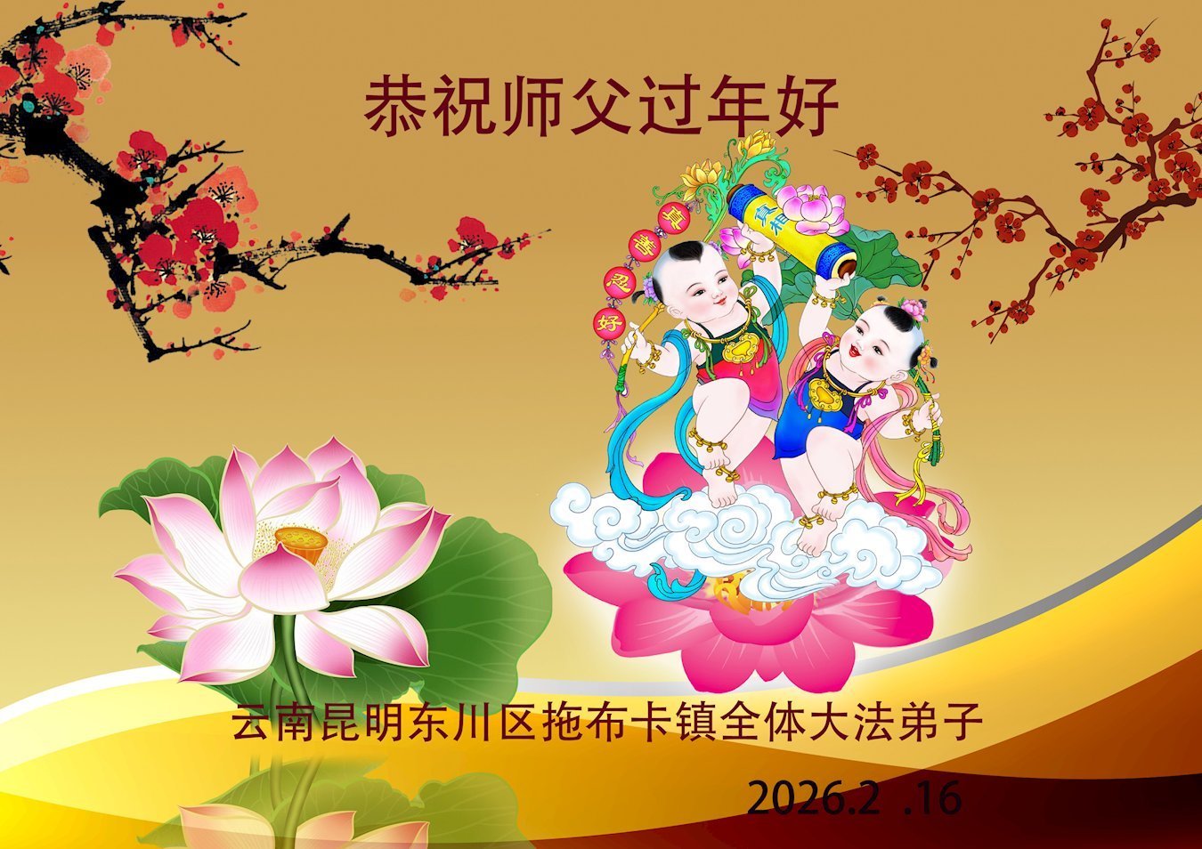 (Minghui.org) Zum chinesischen Neujahrsfest senden Falun-Dafa-Praktizierende auf der ganzen Welt traditionell Grußkarten, Gedichte und Fotos an die Minghui-Website. Damit wünschen sie ihrem barmherzigen, verehrten Meister Li Hongzhi ein frohes neues Jahr.