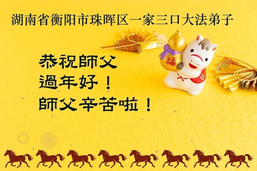 (Minghui.org) Zum chinesischen Neujahrsfest senden Falun-Dafa-Praktizierende auf der ganzen Welt traditionell Grußkarten, Gedichte und Fotos an die Minghui-Website. Damit wünschen sie ihrem barmherzigen, verehrten Meister Li Hongzhi ein frohes neues Jahr.