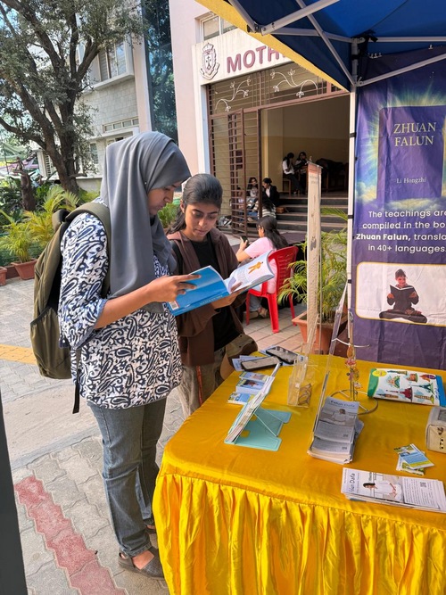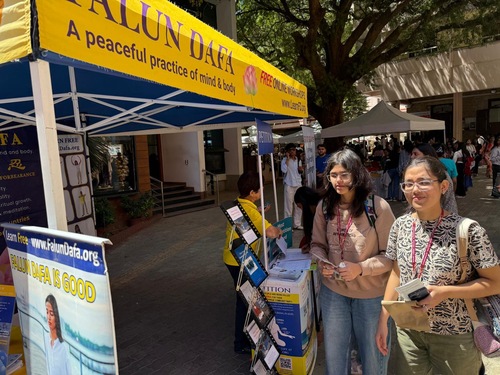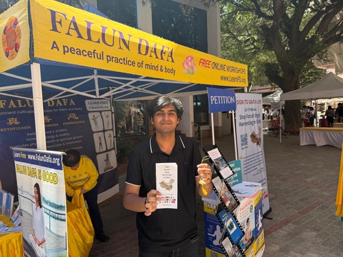 Arvi und Shreya bemerkten: „Es ist erstaunlich, dass nicht mehr Menschen davon wissen. Gut, dass Sie die Initiative ergreifen, um das Bewusstsein dafür zu schärfen.“ Sie waren außerdem daran interessiert, mehr über Falun Dafa zu erfahren.