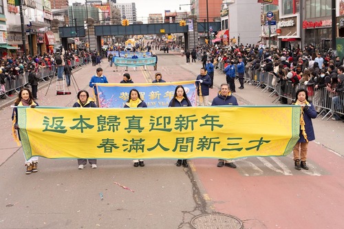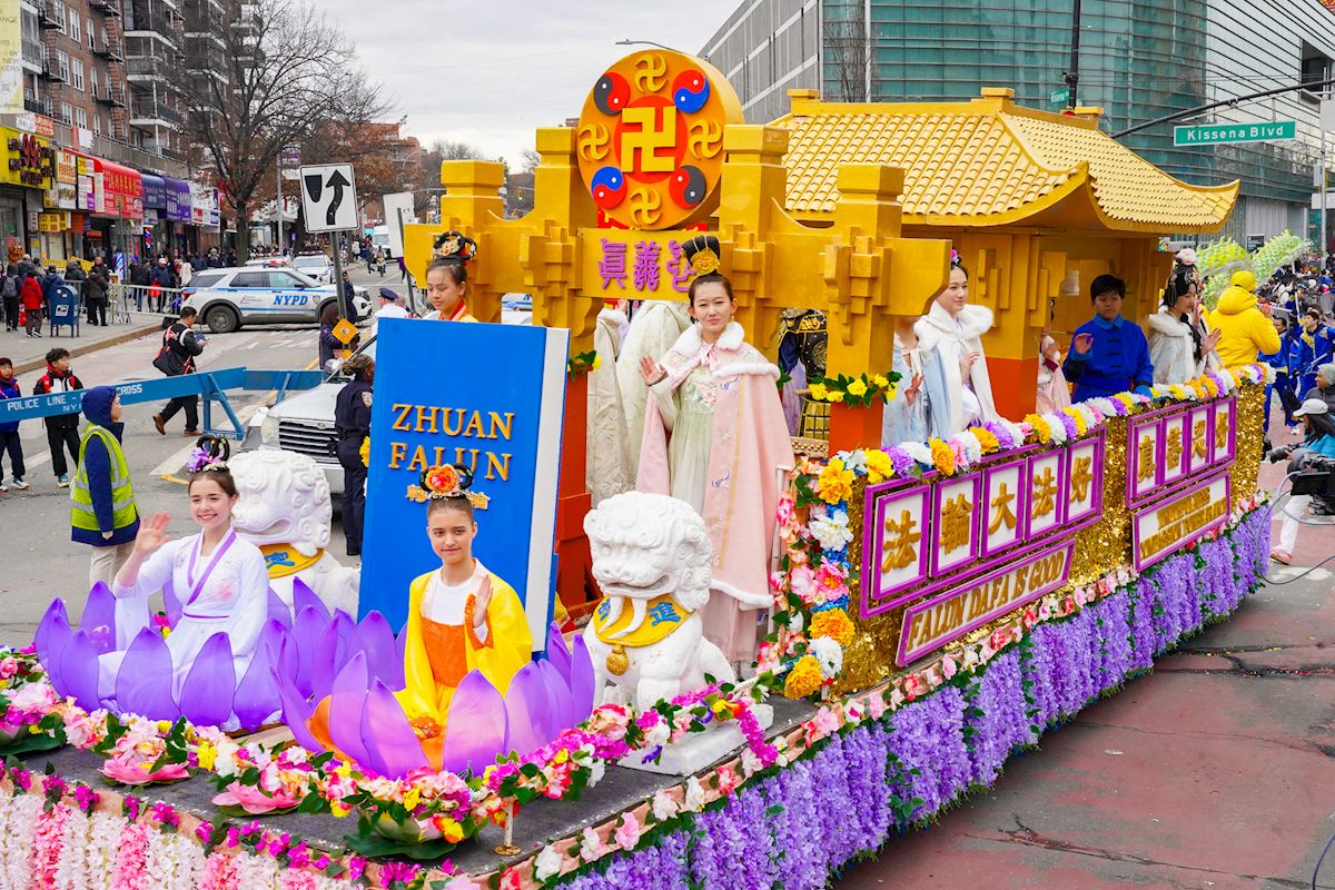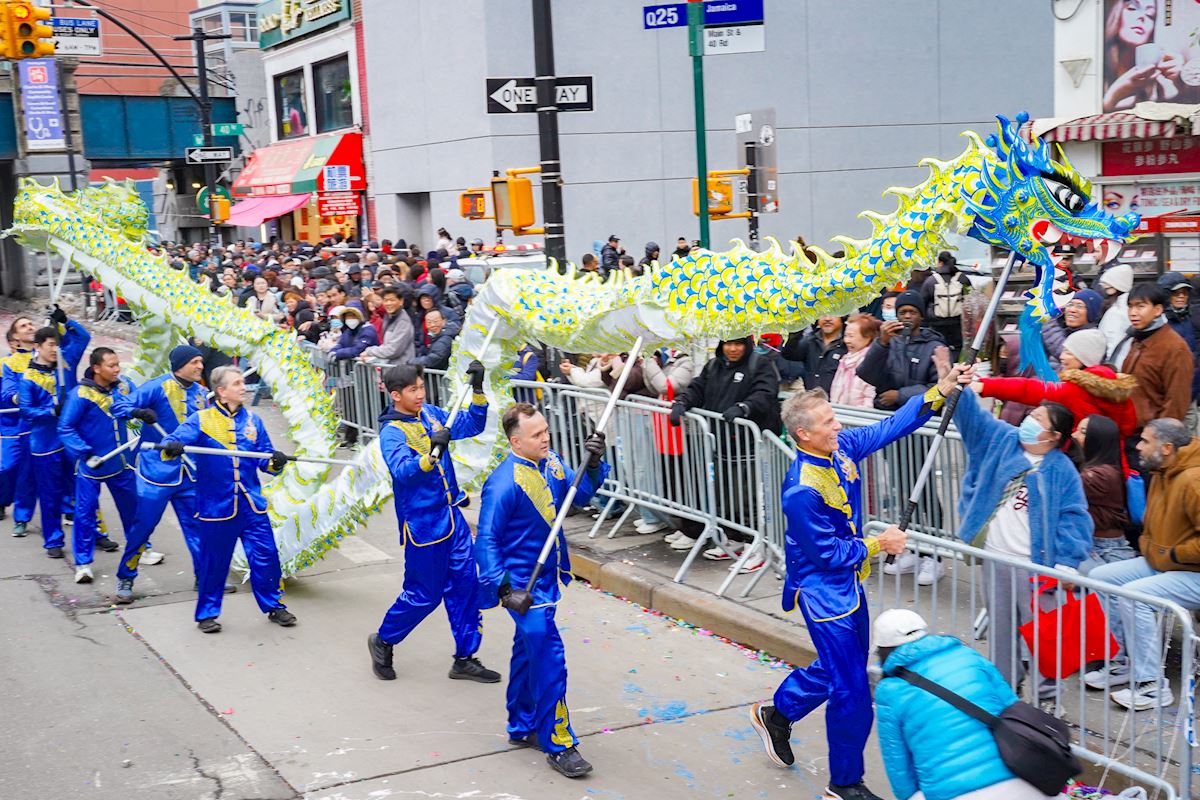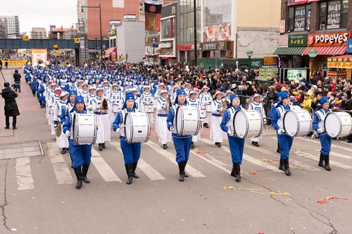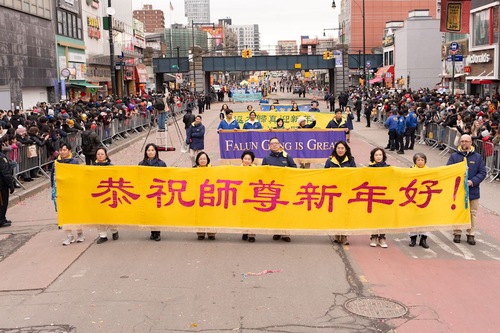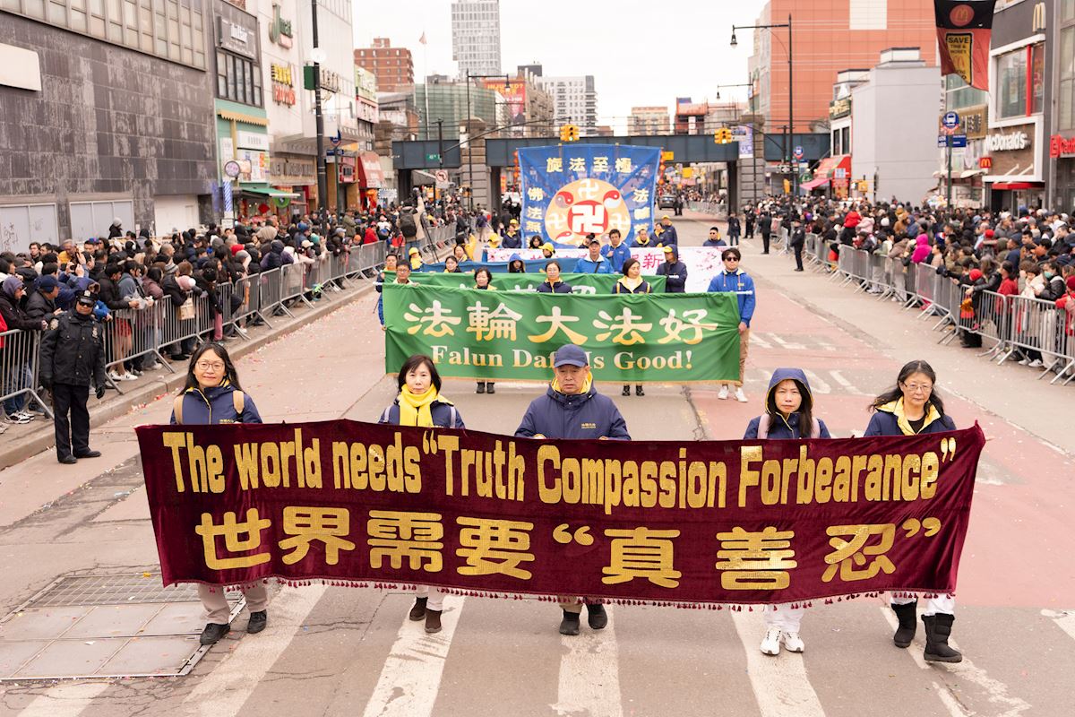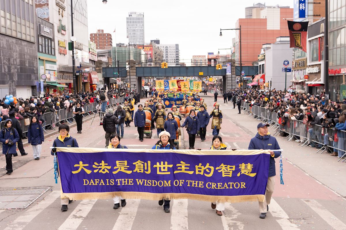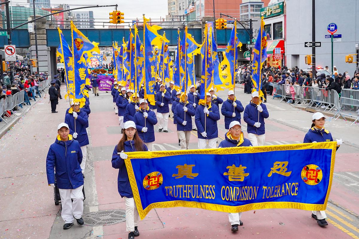 Falun-Dafa-Praktizierende nehmen am 21. Februar 2026 in Flushing, New York, an den Feierlichkeiten zum Chinesischen Neujahr teil