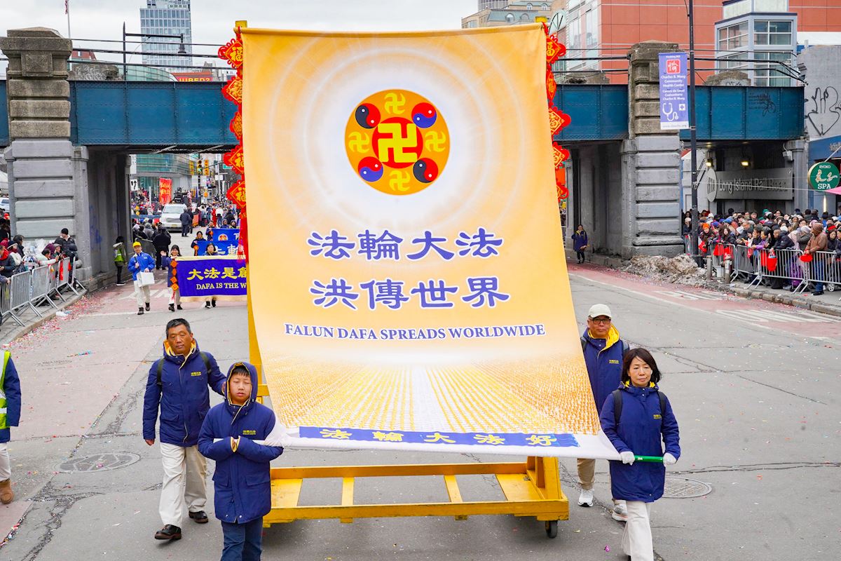 Falun-Dafa-Praktizierende nehmen an der chinesischen Neujahrsparade teil