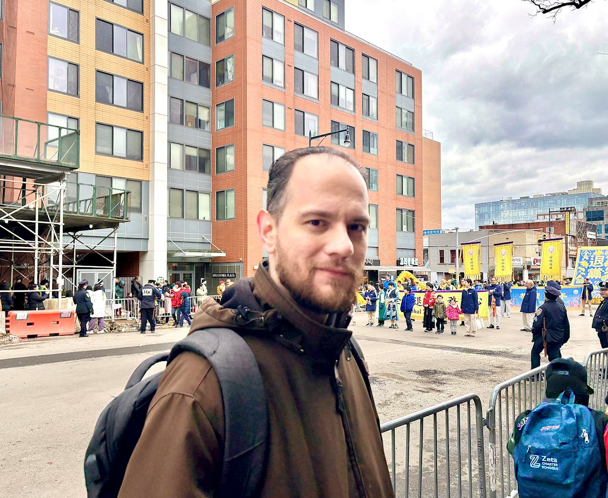 Kyle Shermer, der für ein Softwareunternehmen in New Jersey arbeitet, sah sich die Parade mit seiner Familie an. Ihm gefalle die Botschaft von Falun Dafa – Freundlichkeit und Positivität –, die er besonders in einer Gesellschaft, der es an Empathie mangele, für wichtig halte.