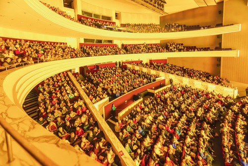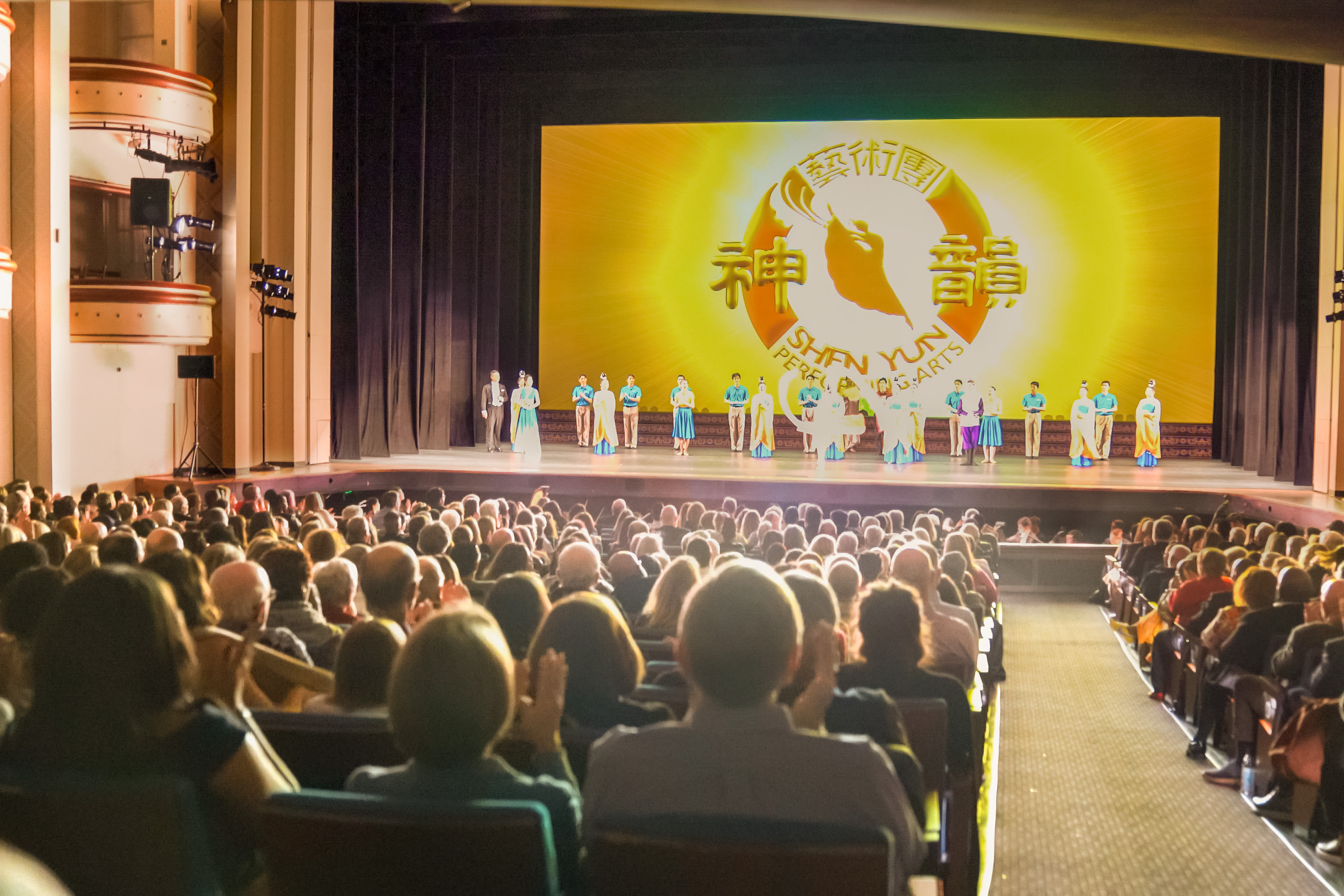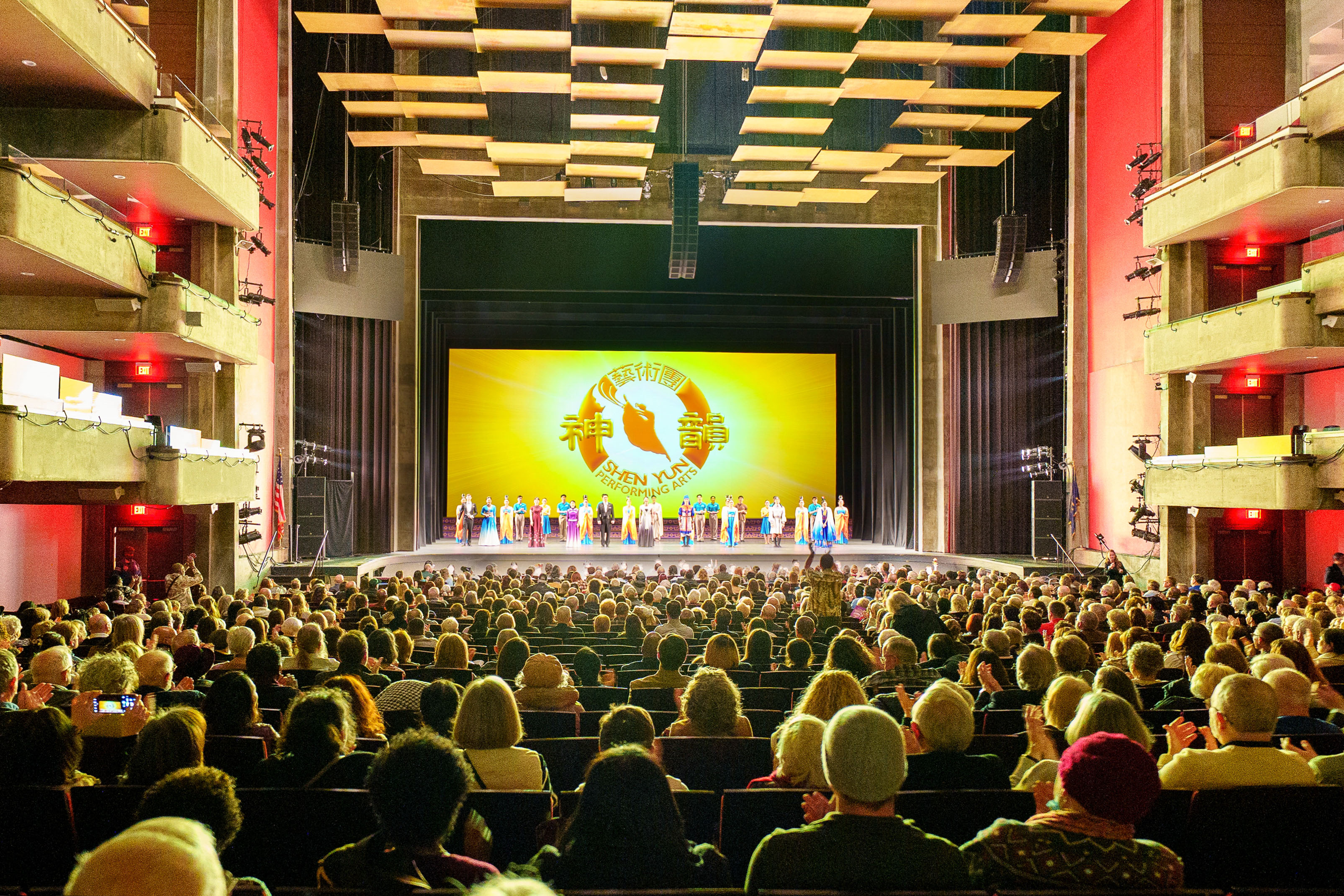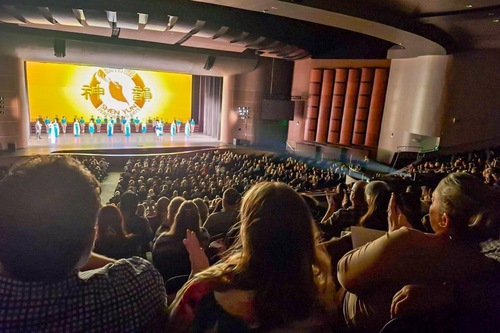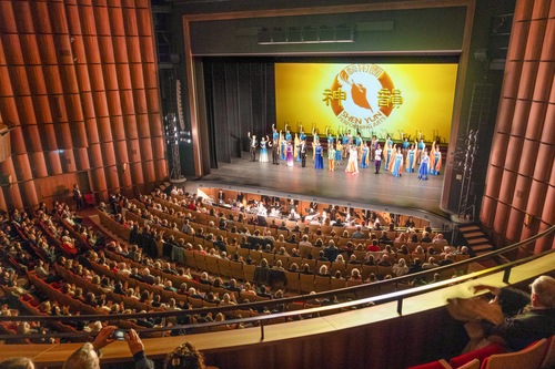 Die Shen Yun New World Company gibt am Abend des 18. Februar im Fine Arts Center in Victoria, Texas, eine Zusatzvorstellung vor ausverkauftem Haus (Screenshot mit freundlicher Genehmigung der Epoch Times)