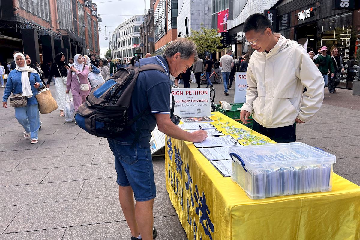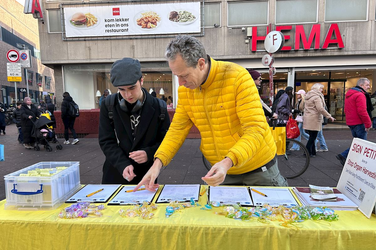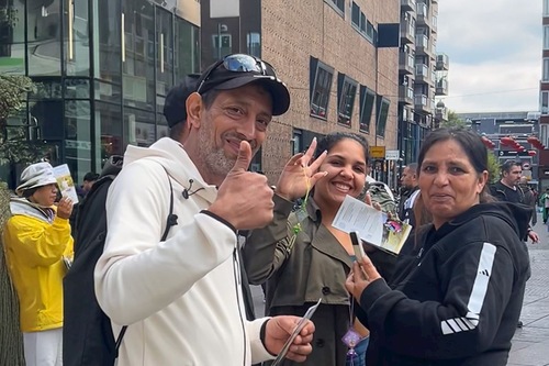 Sandro aus Italien erzählte, dass er in Den Haag arbeite. Er sprach lange mit den Praktizierenden. Über die Gräueltaten der KPCh, insbesondere den Organraub, sagte er: „Organspende sollte eine freie Entscheidung sein. Ich unterstütze Organspenden und möchte nach meinem Tod anderen helfen. Aber man sollte eine freiwillige Spendenerklärung unterschreiben und nicht von bestimmten Gruppen oder Einzelpersonen dafür aus Profitgier getötet werden. Das ist schrecklich!