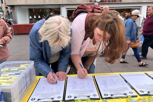 Passanten unterschreiben die Petition, um die Bemühungen der Praktizierenden zur Beendigung der Verfolgung zu unterstützen