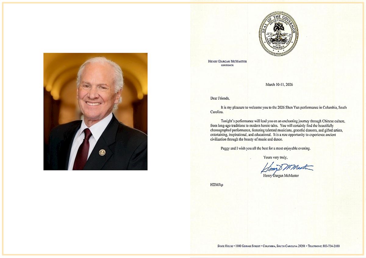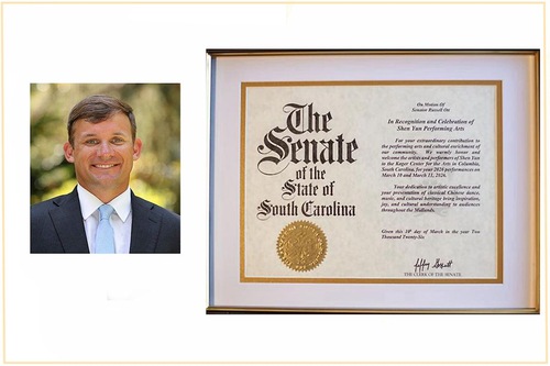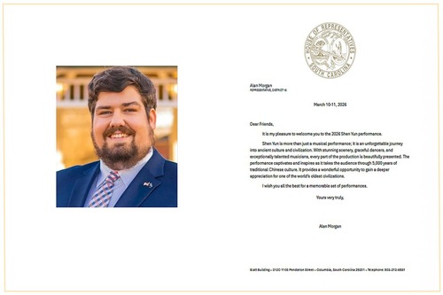Senator Russell Ott aus South Carolina hieß Shen Yun in South Carolina herzlich willkommen und verkündete: „In Anerkennung und Würdigung von Shen Yun Performing Arts für Ihren außergewöhnlichen Beitrag zur darstellenden Kunst und kulturellen Bereicherung unserer Gemeinschaft heißen wir die Künstler und Darsteller von Shen Yun herzlich im Koger Center for the Arts in Columbia, South Carolina, zu Ihren Aufführungen am 10. und 11. März 2026 willkommen.