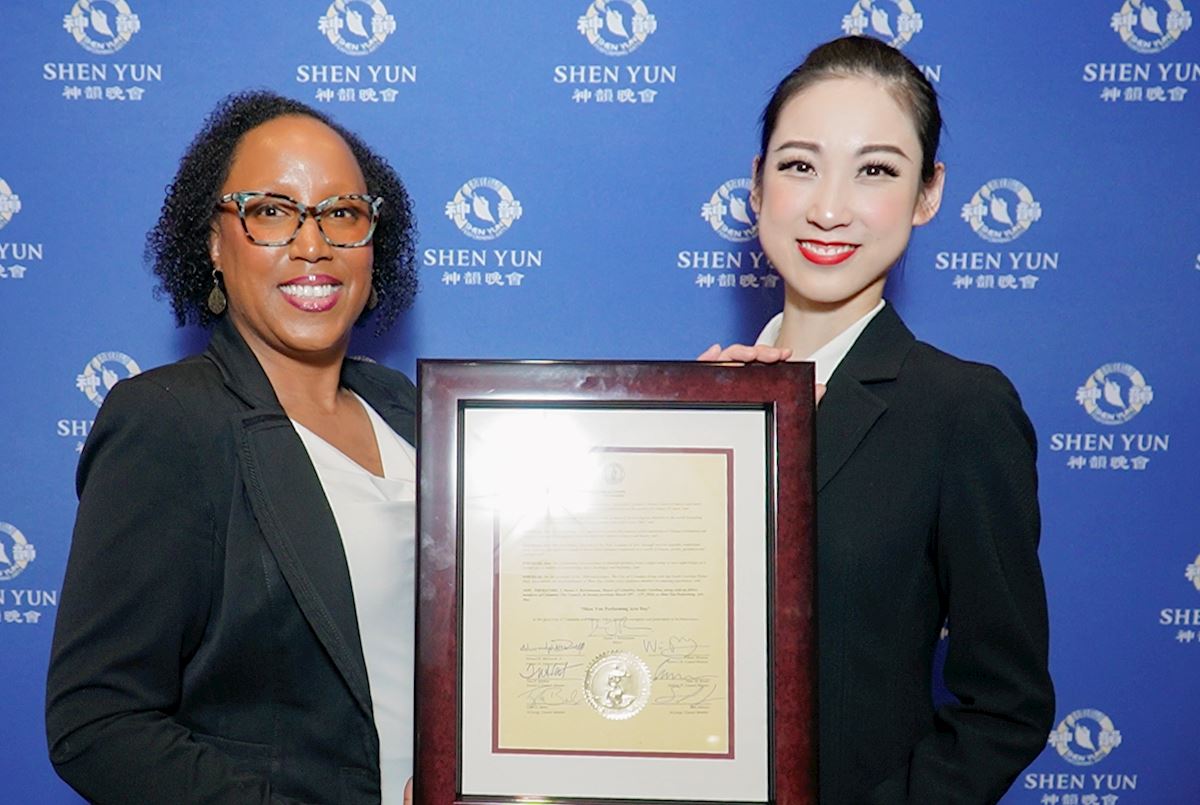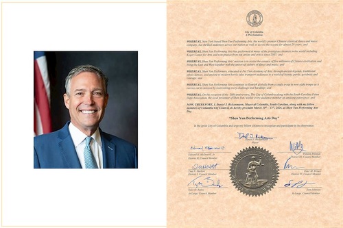 Die Shen Yun New World Company feierte am 10. März in Columbia, der Hauptstadt von South Carolina, ihre Premiere. Im Namen von Bürgermeister Daniel Rickenmann überreichte die Stadtverwaltungschefin Chanique Belton Shen Yun eine Auszeichnung. Darin erklärte der Bürgermeister gemeinsam mit den Stadträten Tina N. Herbert (1. Bezirk), Edward H. McDowell Jr. (2. Bezirk), William Brennan (3. Bezirk), Peter M. Brown (4. Bezirk) sowie Tyler D. Bailey und Sam Johnson als Vertreter aller Stadträte den Tag zum „Shen Yun Performing Arts Day“.