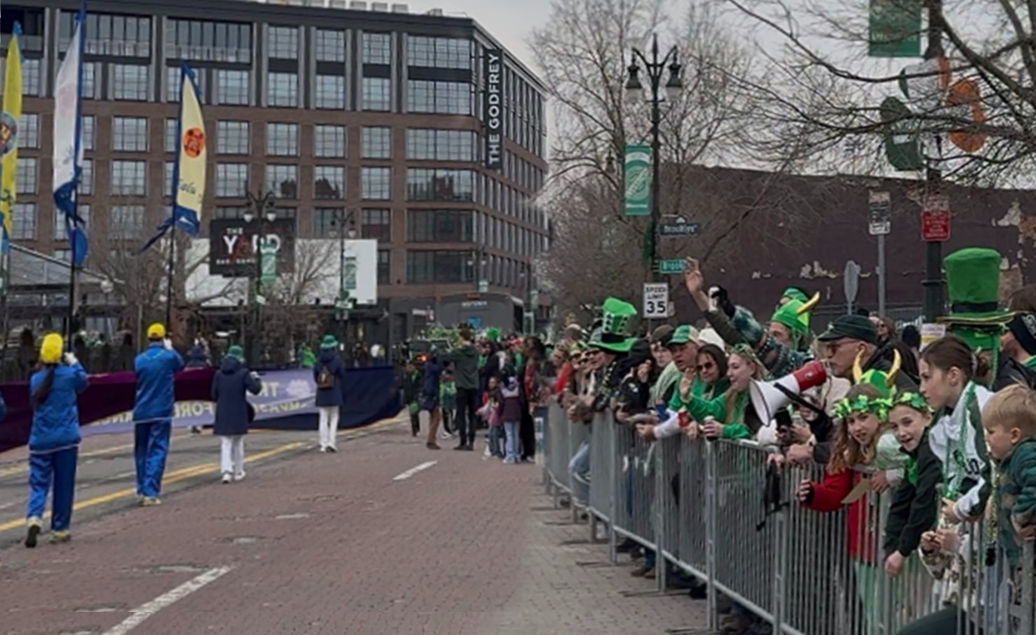 Viele Zuschauer tragen zur Feier des St. Patrick’s Day grüne Kleidung und winken den Praktizierenden zu