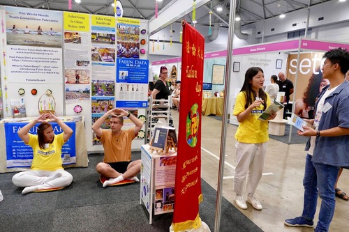 Die Besucher informierten sich am Stand der Praktizierenden über Falun Dafa und sahen sich die Übungsdemonstrationen an. Einige lernten die Übungen direkt vor Ort, andere kauften Bücher und erkundigten sich nach Übungsgruppen.