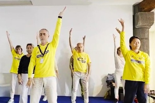 Nachdem er die Praktizierenden bei den Übungen beobachtet hatte, bemerkte Claude: „Sie wirken sehr friedlich und ruhig. Allein ihr Anblick vermittelt eine tiefe innere Ruhe.“
