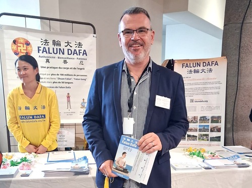 Claude Vernet, ein Fußreflexzonentherapeut, wollte nach einem Gespräch mit einem Falun-Dafa-Praktizierenden mehr über die Praxis erfahren und schlug vor, sie auf einer Bio-Produktmesse vorzustellen. „Gesundheit betrifft nicht nur den Körper, sondern zeigt sich auch auf emotionaler und spiritueller Ebene. Falun Dafa bietet eine alternative Denkweise, die viele Menschen ansprechen kann“, erklärte er.