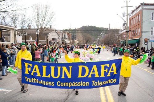 Falun-Dafa-Praktizierende nehmen an der St.-Patrick’s-Day-Parade in Milford teil