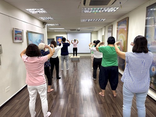 Die Teilnehmer lernen die Falun-Dafa-Übungen