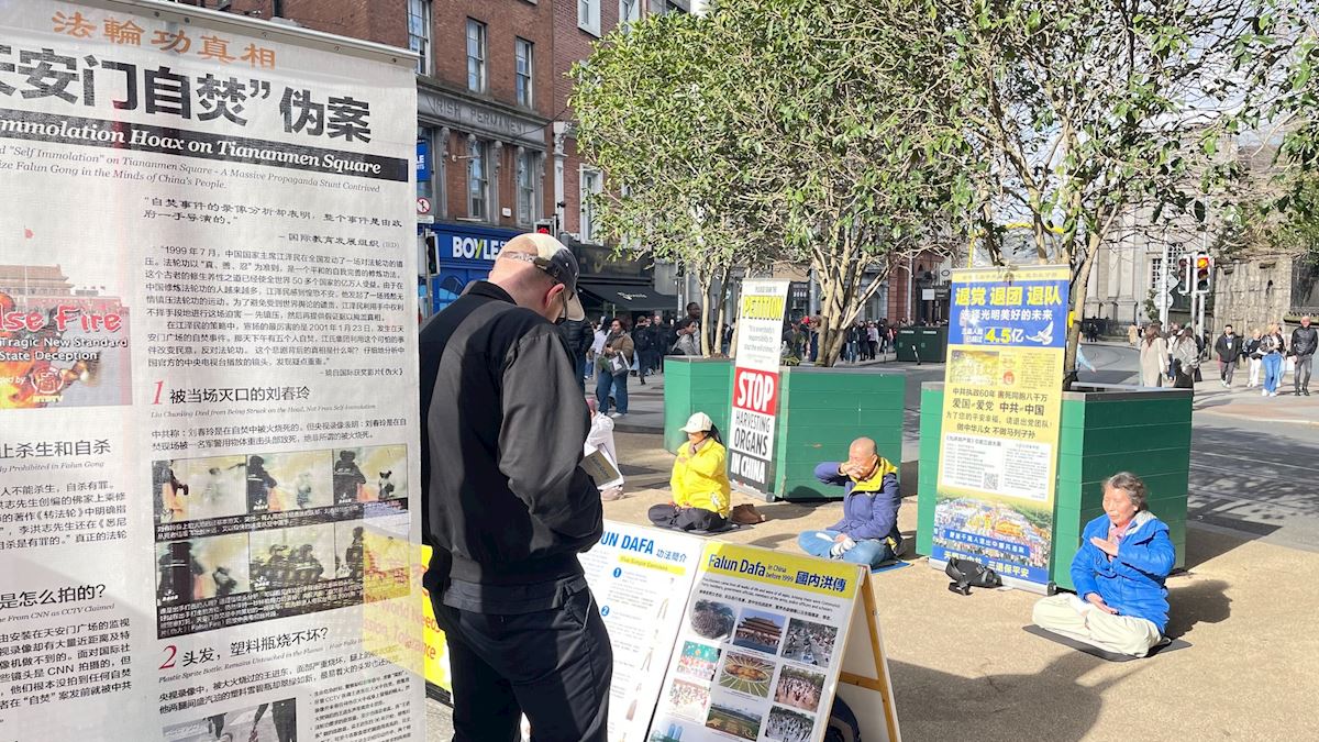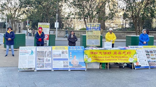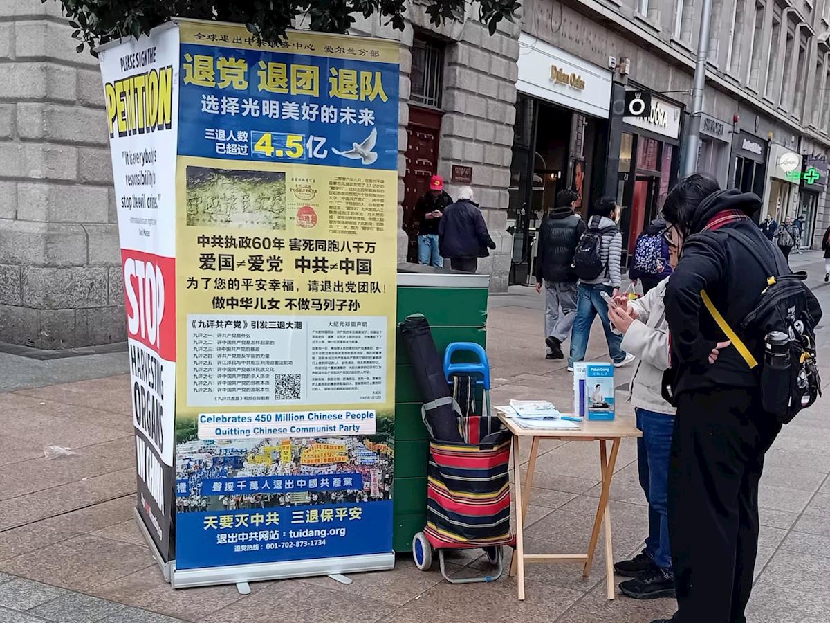 (Minghui.org) Falun-Dafa-Praktizierende in Irland haben im März 2026 jedes Wochenende in Dublin Veranstaltungen zur Vorstellung von Falun Dafa organisiert. Sie machten auch auf die Verfolgung von Falun Dafa durch die Kommunistische Partei Chinas (KPCh) aufmerksam, die seit Juli 1999 unvermindert andauert. Da immer mehr chinesische Studenten, Einwanderer und Touristen die Region besuchen, richteten die Praktizierenden auch während der Woche einen Informationsstand ein. Viele Chinesen nutzten die Gelegenheit, aus der KPCh und den ihr angeschlossenen Jugendorganisationen auszutreten.