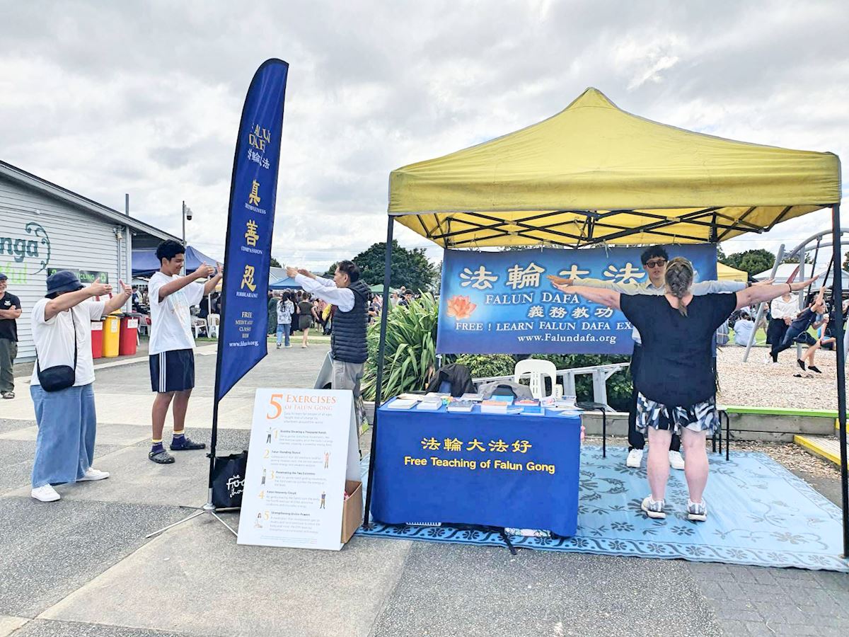 Die Praktizierenden hatten zudem einen Stand auf dem Festival, um Falun Dafa der Öffentlichkeit vorzustellen. Dort blieben viele Besucher stehen, um sich die Übungsvorführungen anzusehen. Einige lernten die Übungen direkt vor Ort von den Praktizierenden.