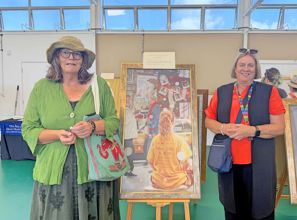 Zwei Maori-Frauen berichteten, sie fühlten sich nach dem Besuch der Kunstausstellung erfrischt. Sie probierten auch die Falun-Dafa-Übungen aus und spürten bei der zweiten Übung eine starke Energie um ihre Arme herum.