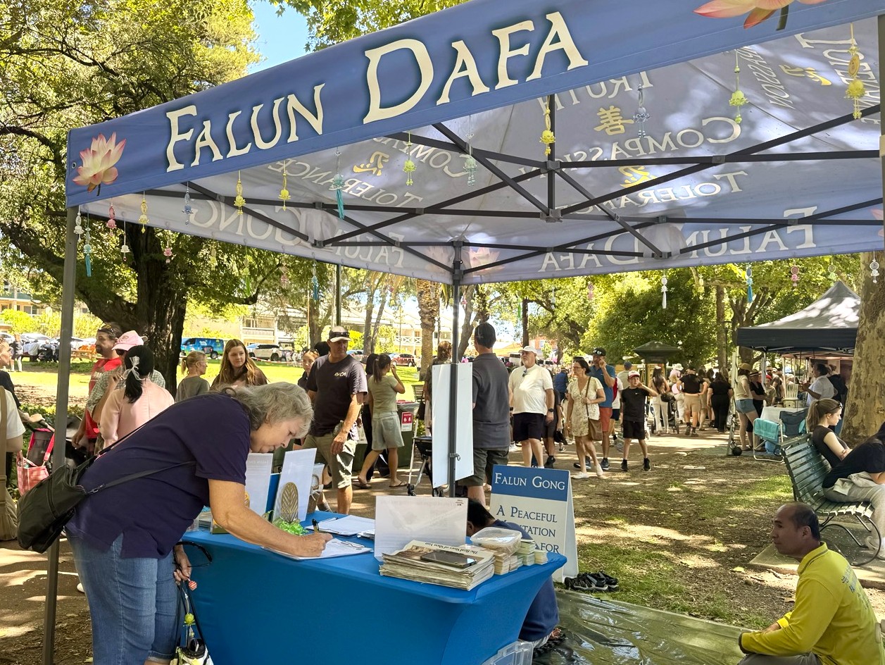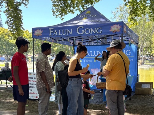 Viele Menschen suchten den Stand der Falun-Dafa-Praktizierenden auf und hörten sich die Einführung in die Kultivierungsmethode an. Auch die Verfolgung durch die KPCh kam dabei zur Sprache und brachte die Zuhörer dazu, die Petition, die ein Ende der Menschenrechtsverletzungen fordert, zu unterzeichnen.