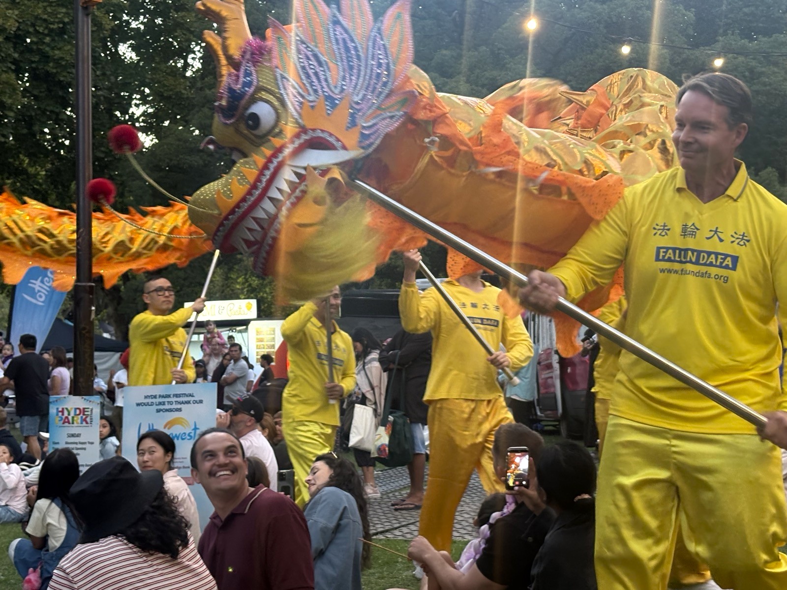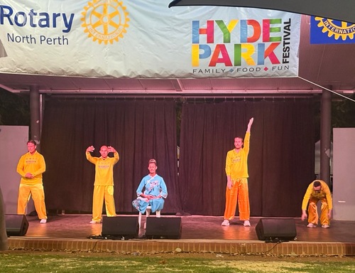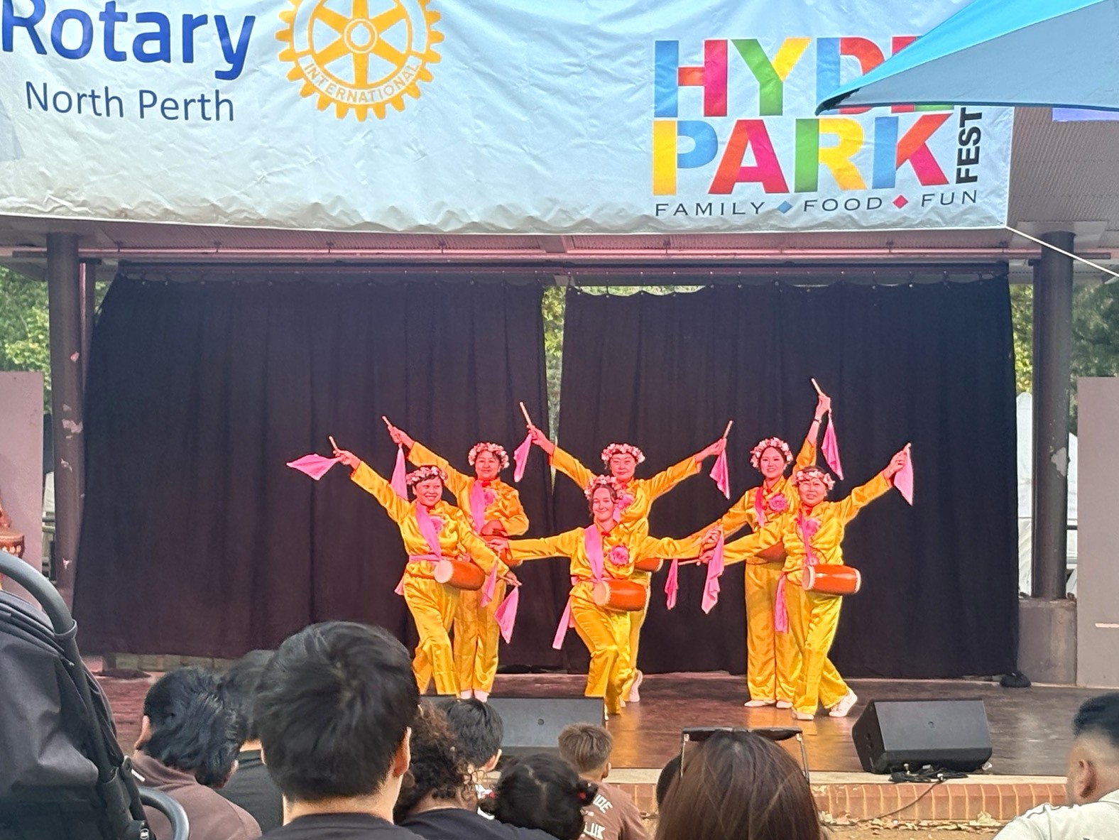 (Minghui.org) Das alljährliche Hyde Park Festival im australischen Perth fand am 1. und 2. März 2026 statt. Falun-Dafa-Praktizierende waren eingeladen, daran teilzunehmen. Sie stellten dort die universellen Werte Wahrhaftigkeit, Güte und Nachsicht vor und machten auf die Verfolgung von Falun Dafa durch die Kommunistische Partei Chinas (KPCh) aufmerksam. Außerdem präsentierten sie die Falun-Dafa-Übungen, führten einen Drachentanz und Trommelmusik auf und erfreuten die Zuschauer mit verschiedenen Tänzen auf der Bühne.
