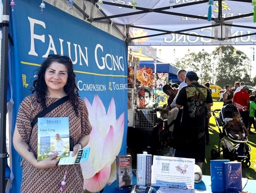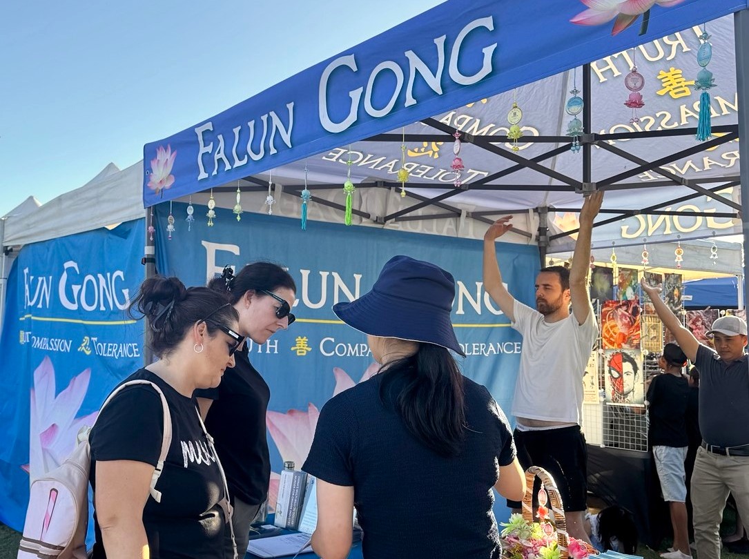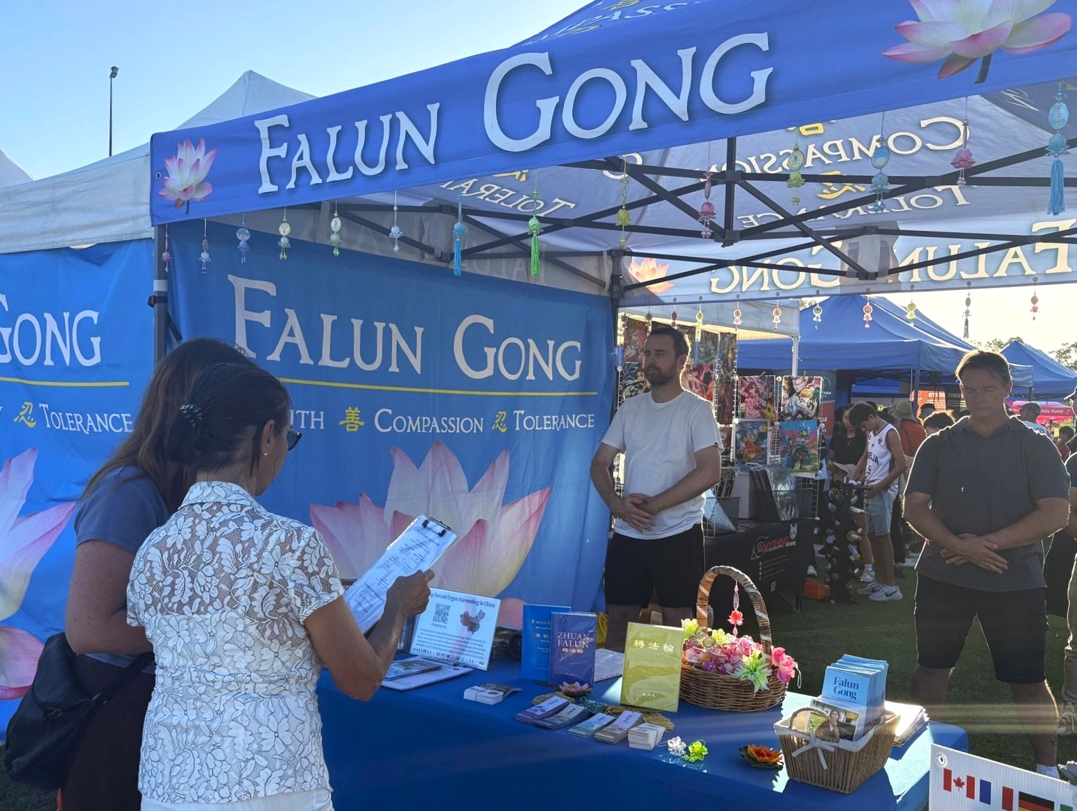 Viele Festivalbesucher nutzten die Gelegenheit, mehr über Falun Dafa zu erfahren, eine traditionelle Praxis, die Körper und Geist gleichermaßen guttut. Etliche nahmen Karten mit Informationen zu kostenlosen Online-Kursen mit. Einige äußerten zudem den Wunsch, die Falun-Dafa-Übungen zu erlernen.