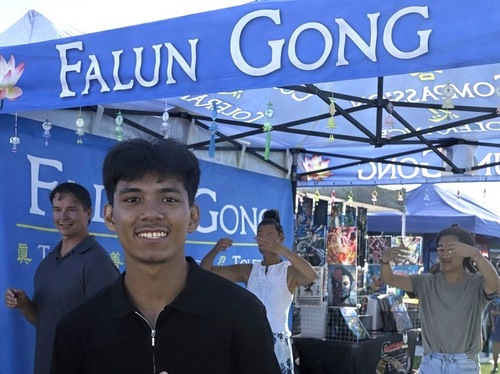 Hakim Amirrshid, ein junger Mann aus Malaysia, blieb am Stand der Falun-Dafa-Praktizierenden stehen und brachte seine Wertschätzung für die Prinzipien Wahrhaftigkeit, Güte und Nachsicht zum Ausdruck. Er erklärte, soziale Medien seien heute von Negativität geprägt, während Werte wie Religion und Glaube zunehmend in den Hintergrund träten, da viele Menschen die Existenz des Göttlichen leugneten. „Ich weiß, dass besonders Menschen in meinem Alter kaum noch einen Glauben haben – sie vertrauen nur noch dem, was ihnen die sozialen Medien vermitteln. Aber ich weiß auch, dass es auf dieser Welt noch Menschen gibt – wie mich und euch [Falun-Dafa-Praktizierende] –, die an etwas glauben.“