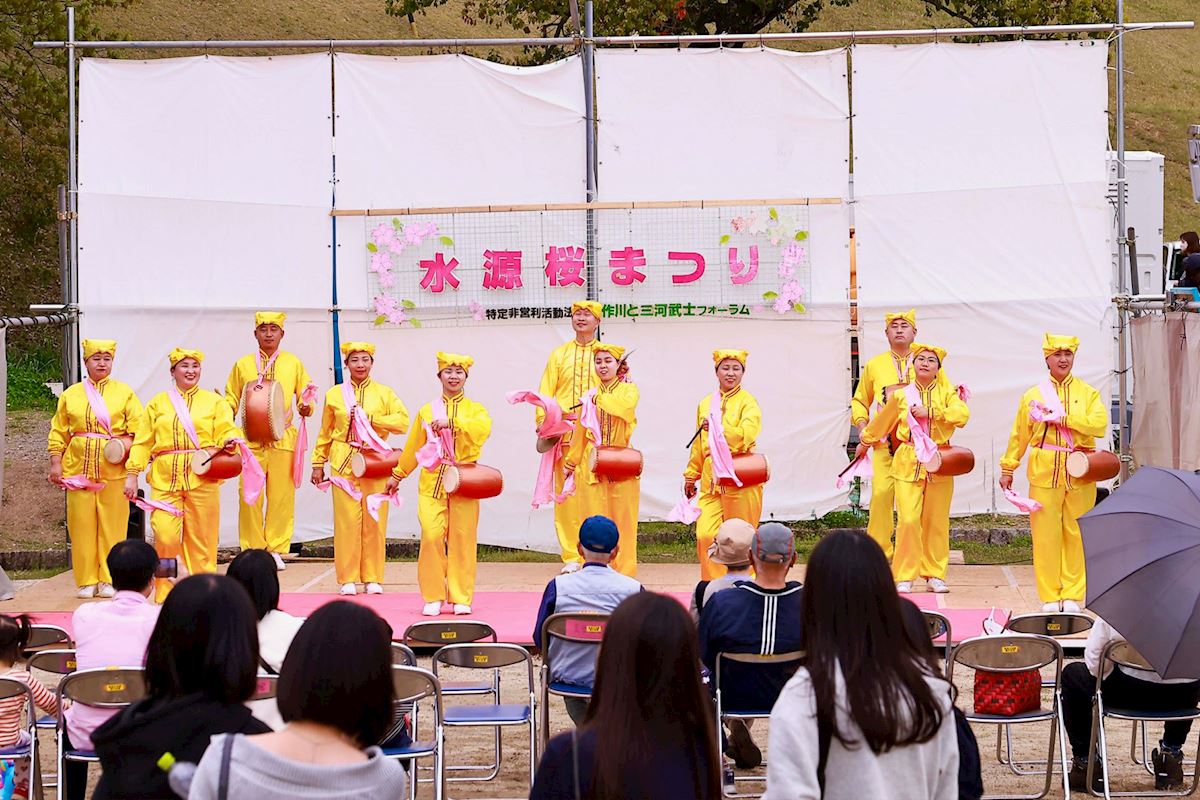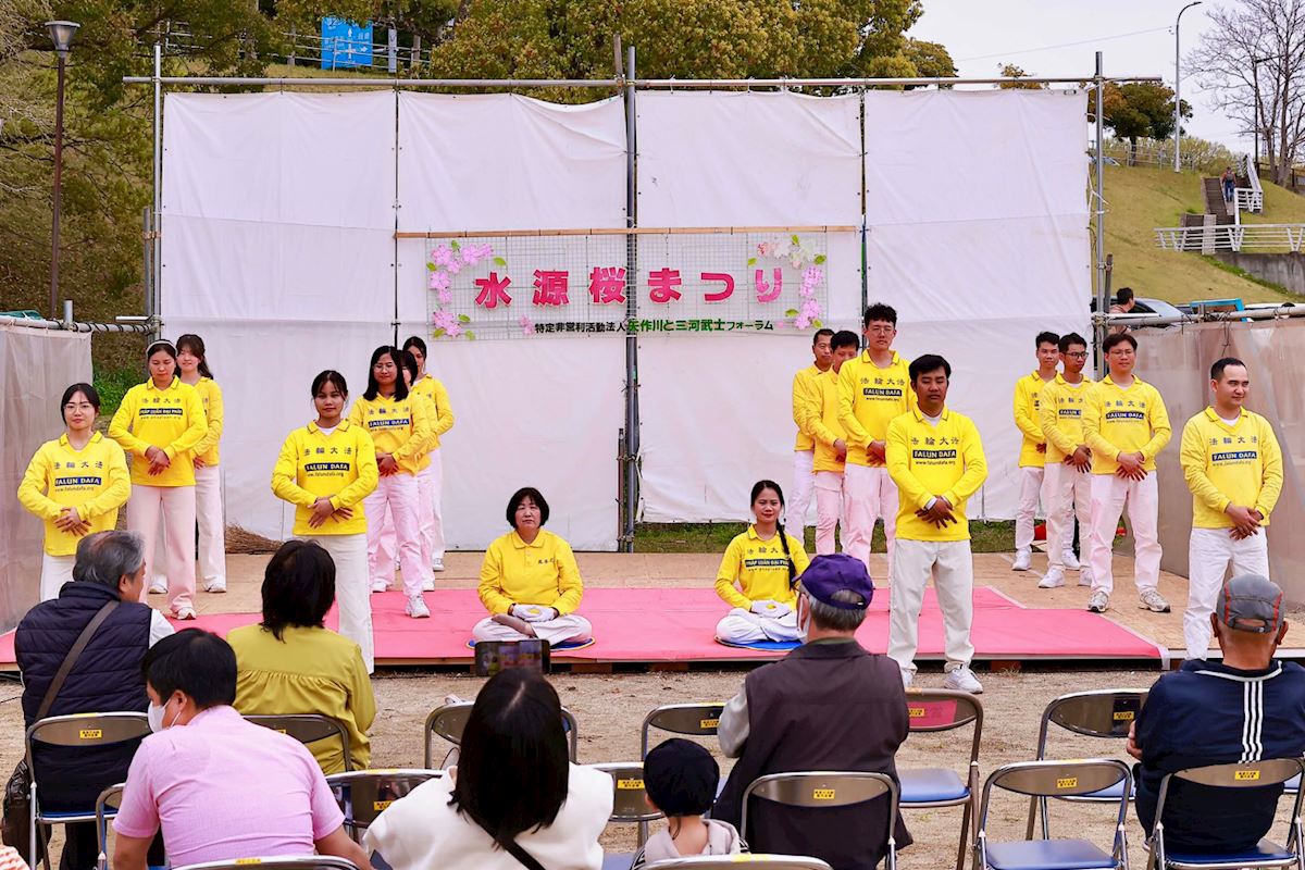 (Minghui.org) Falun-Dafa-Praktizierende aus der Präfektur Aichi nahmen am 4. und 5. April 2026 am 32. Suigen-Kirschblütenfest in Toyota teil. Mit ihren ruhigen Übungsvorführungen, einer energiegeladenen Hüfttrommel-Darbietung und Informationsmaterialien machten sie Einheimische und Besucher aus aller Welt mit Falun Dafa bekannt.