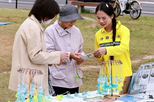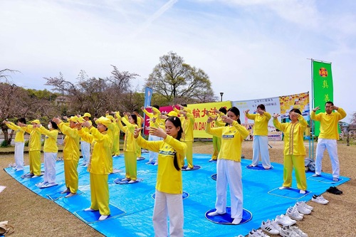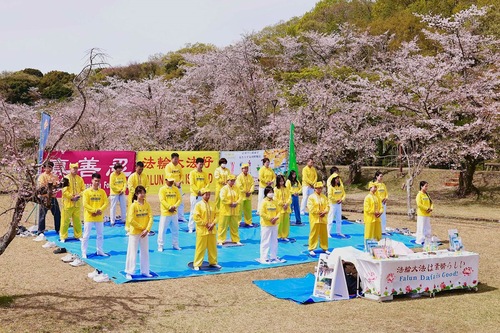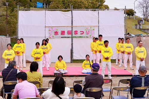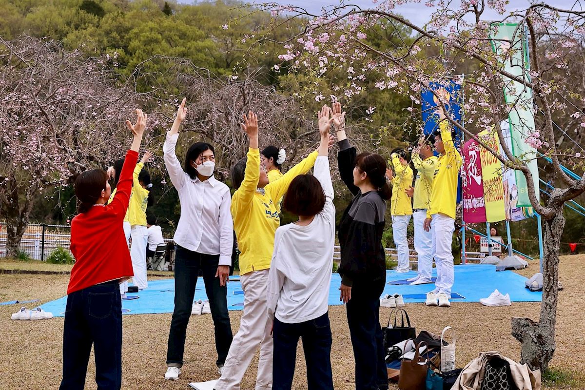 Das Fest fand im Suigen-Park statt, der für seine prachtvolle Kirschblüte bekannt ist und zur Blütezeit zahlreiche Besucher anzieht. Viele von ihnen blieben stehen, um den Übungen zuzusehen, kamen mit den Praktizierenden ins Gespräch und erfuhren dabei mehr über Falun Dafa. Zahlreiche Menschen unterzeichneten eine Petition zur Beendigung der Verfolgung in China, während manch einer die Übungen direkt vor Ort erlernte.