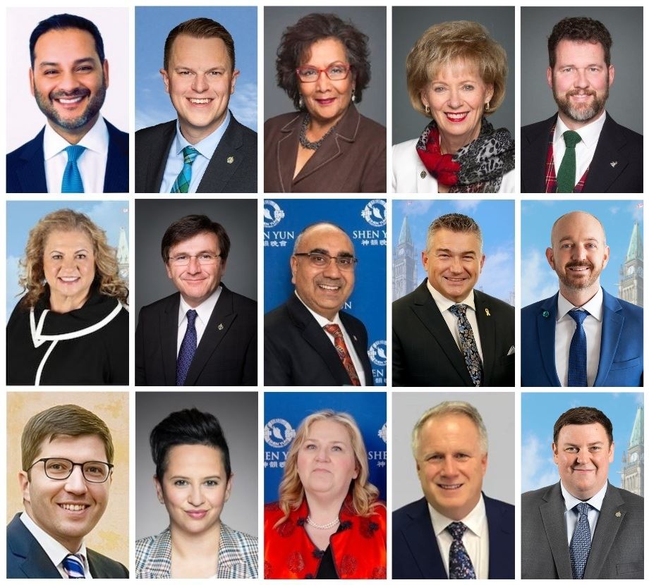 Regierungsbeamte begrüßen Shen Yun in Vancouver (Screenshot mit freundlicher Genehmigung von Minghui.org)1. Reihe, v.l.n.r.: Shuvaloy Majumdar, Mitglied des Parlaments (MP) für Alberta; Brad Vis, Mitglied des Parlaments für British Columbia; Hedy Fry, Mitglied des Parlaments für Vancouver Centre und Mitglied des Privy Council (PC); Judy Sgro, langjährige Abgeordnete, ehemalige Einwanderungsministerin und Co-Vorsitzende der Parlamentarischen Freunde von Falun Gong; und Scott Reid, Mitglied des Parlaments für Ontario2. Reihe: Anna Roberts, Mitglied des Parlaments für Ontario; Costas Menegakis, Mitglied des Parlaments für Ontario; Amarjeet Gill, Mitglied des Parlaments für Ontario; James Bezan, Mitglied des Parlaments für Manitoba; Michael Guglielmin, Mitglied des Parlaments für Ontario3. Reihe: Garnett Genuis, Mitglied des Parlaments und Schattenminister für Beschäftigung; Melissa Lantsman, Mitglied des Parlaments und stellvertretende Oppositionsführerin; Rhonda Kirkland, Mitglied des Parlaments für Ontario; Marc Dalton, Mitglied des Parlaments für British Columbia und Andrew Lawton, Mitglied des Parlaments für Ontario