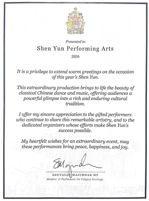 (Minghui.org) Die Shen Yun North America Company präsentiert vom 8. bis 12. April 2026 sechs Vorstellungen im Queen Elizabeth Theatre in Vancouver. Abgeordnete der Bundes-, Provinz- und Stadtregierungen von British Columbia haben Schreiben und Proklamationen veröffentlicht, mit denen sie Shen Yun in Kanada willkommen heißen und dem Ensemble zum 20-jährigen Jubiläum gratulieren.