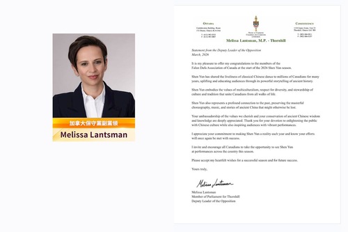 Melissa Lantsman, Abgeordnete und stellvertretende Oppositionsführerin, schrieb: „Shen Yun begeistert seit vielen Jahren Millionen von Kanadiern mit der Lebendigkeit des klassischen chinesischen Tanzes und beseelt und bildet sein Publikum durch die eindrucksvolle Darstellung alter Geschichten.“