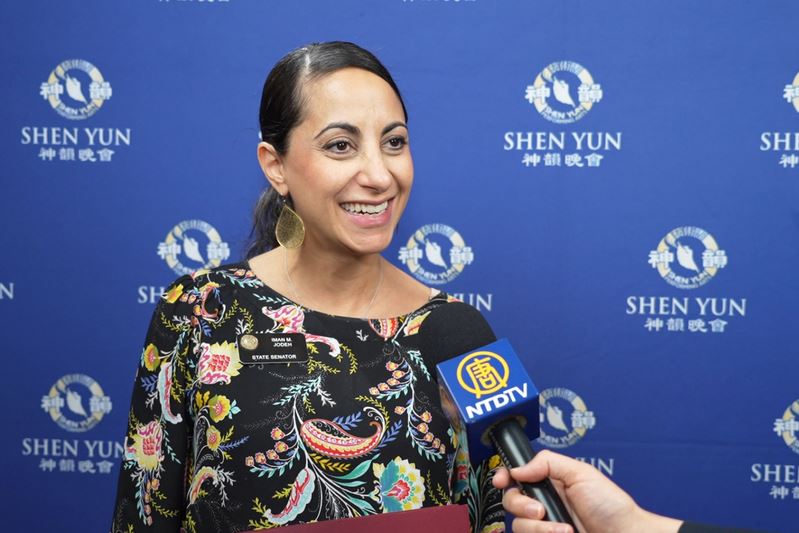 Iman Jodeh, Senatorin des US-Bundesstaates Colorado, besuchte am 12. April eine Aufführung von Shen Yun in Denver. Im Namen des Senats von Colorado hielt sie eine Rede zu Ehren der Tanzgruppe.
