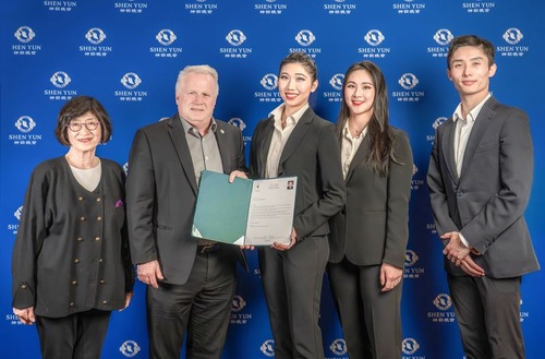 Dalton überreichte dem Ensemble eine Urkunde, die Shen Yuns 20-jähriges Bühnenjubiläum würdigte. In der Urkunde heißt es: „Shen Yun ist ein künstlerischer und kultureller Schatz, der das Publikum mit einigen der besten universellen Werte, die alle Kanadier teilen, wie Barmherzigkeit, Mut, Loyalität, Freiheit und Respekt, begeistert.“