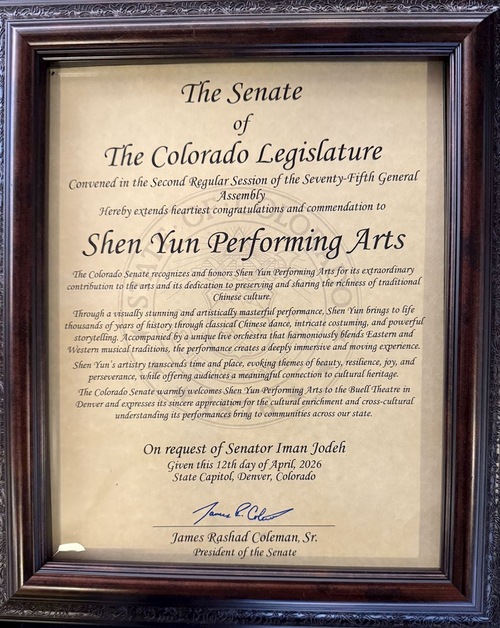 „Wir möchten heute Shen Yun und die kulturelle Vielfalt, die sie nach Colorado bringen, würdigen. Wir ehren die chinesische Kultur durch Tanz und Erzählung und möchten sicherstellen, dass wir diese Vielfalt für die Bevölkerung Colorados fördern“, betonte Jodeh.