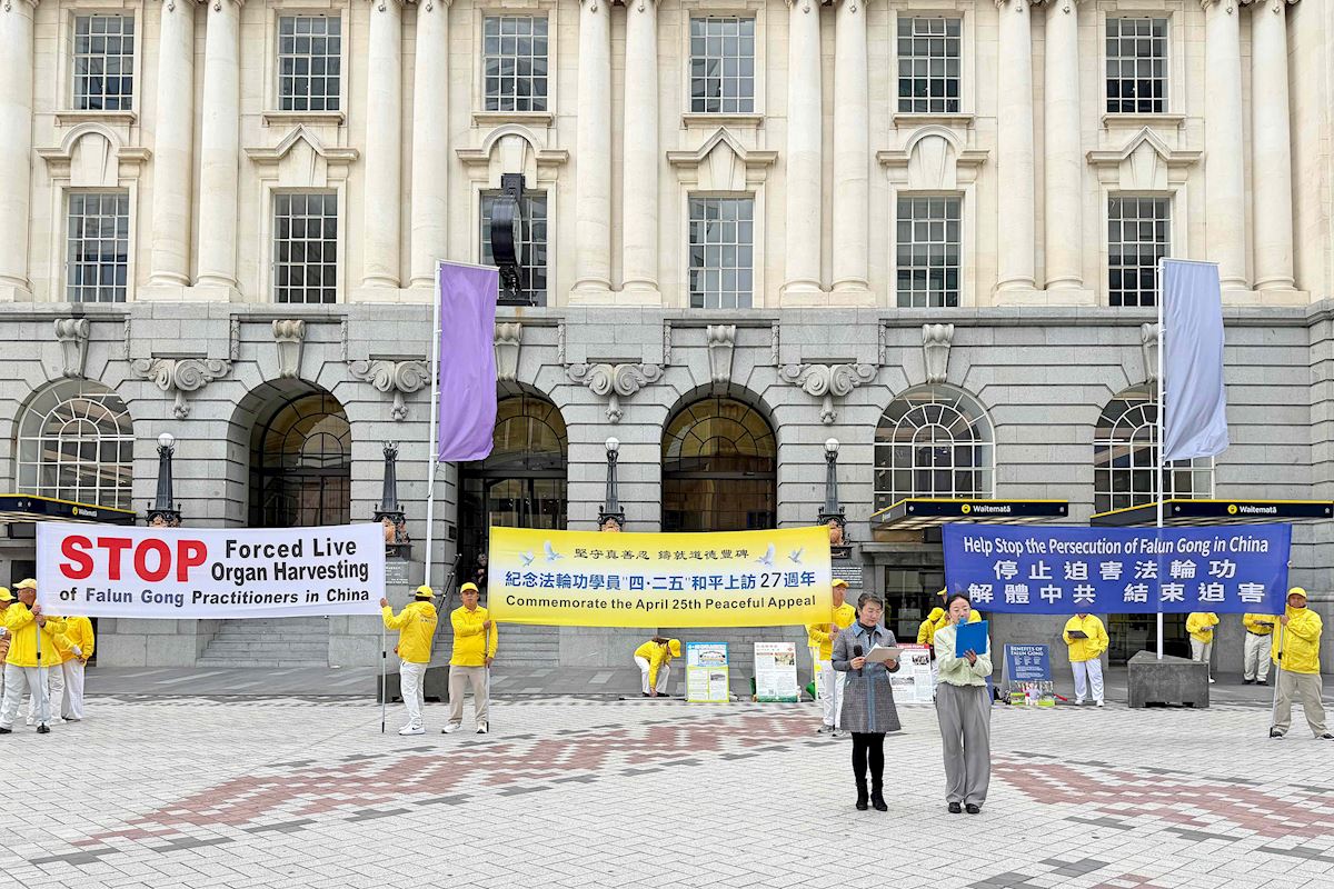(Minghui.org) Am 18. April 2026 versammelten sich Falun-Dafa-Praktizierende im Stadtzentrum von Auckland (Neuseeland), auf dem Platz des Commercial Bay, zu einer ruhigen und friedlichen Gedenkveranstaltung. In würdevoller Weise erinnerten sie an den 27. Jahrestag des Appells vom „25. April“. Die stille Szenerie zog zahlreiche Passanten, viele hielten inne.